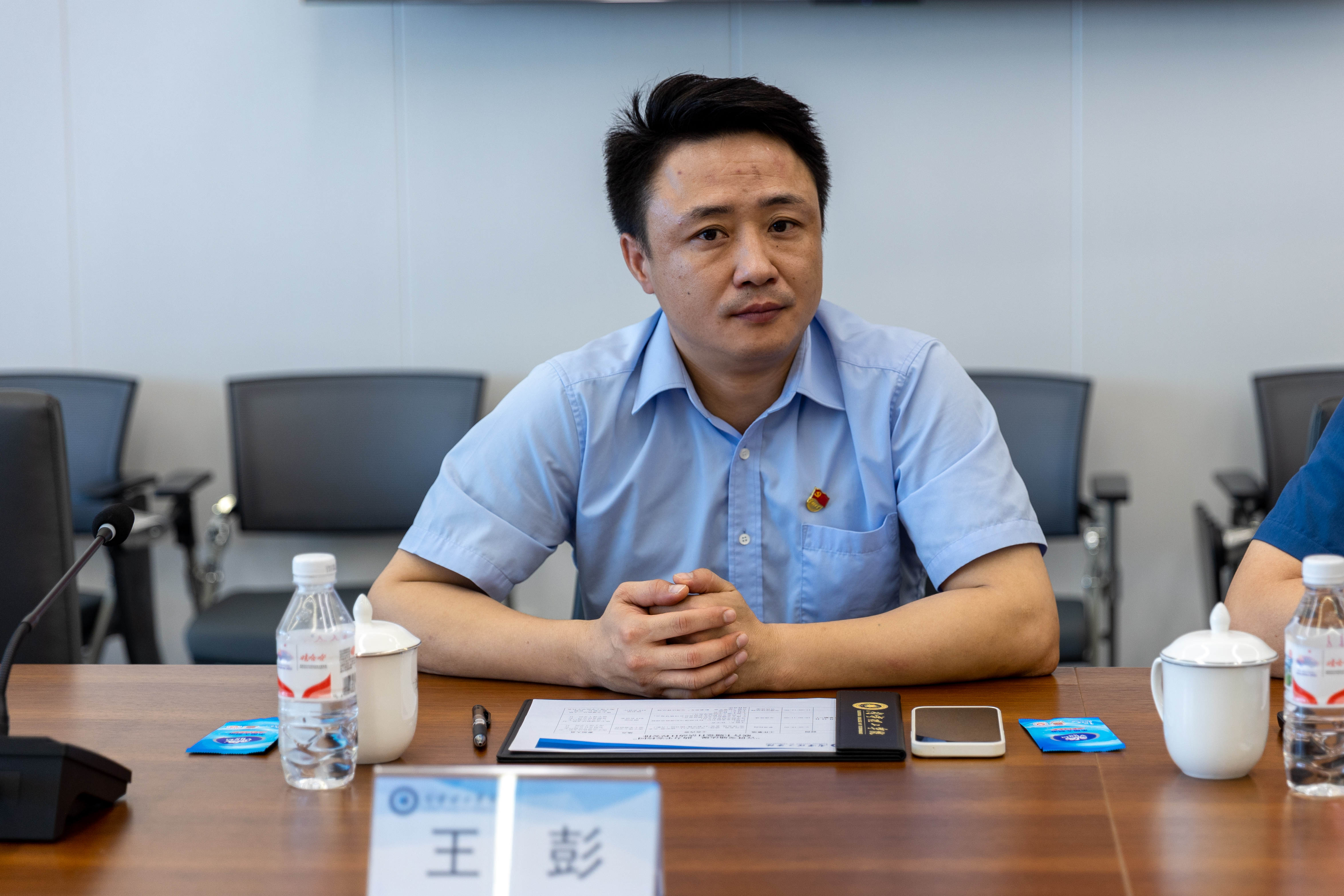 随后,在图书馆619会议室开展党建工作座谈会,座谈会由学校南宁东盟校区机关党支部书记孙宝会主持。学校党委副书记、校长助理马纪涛介绍了学校概况以及学校党委“12369”党建工作工程取得的实效。南宁市交通运输综合行政执法支队党委书记李向东充分肯定了我校党建工作所取得的成果,并认为在习近平新时代中国特色社会主义思想的引领下,政府执法部门、企业单位和学校三方可以加强合作,整合现有资源,共同创造和谐安全的校园环境,促进行业建设与发展。广西北方出租汽车有限责任公司党支部书记王彭提出未来要加强以党建形式促进执法部门、企业单位和学校三方的和谐发展,共同做好服务保障工作。