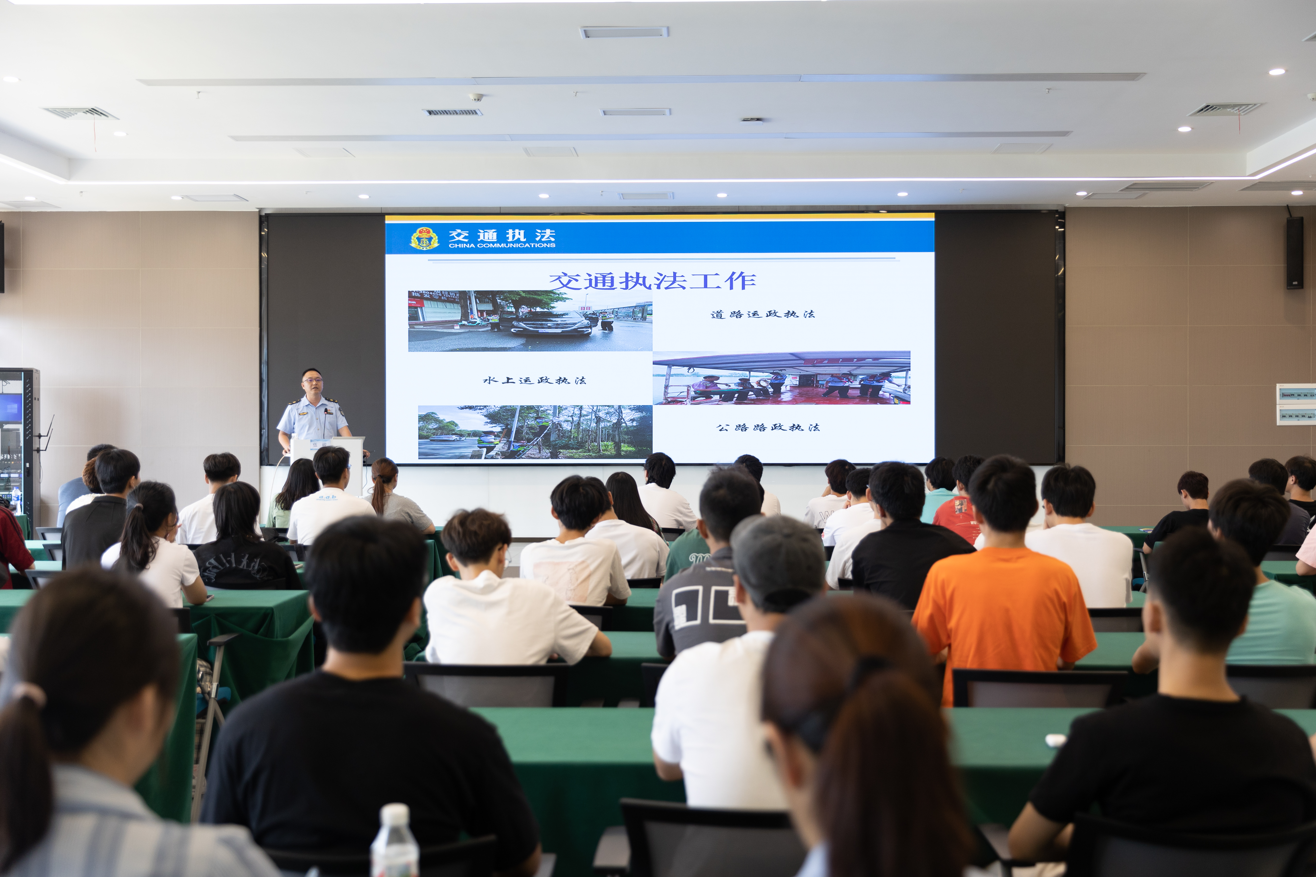座谈会结束后,开展了“珍爱生命 拒绝‘黑车’”的主题讲座,与会人员以及南宁理工学院学生代表参加,讲座由南宁交通执法二大队副大队长伍峻主讲。
