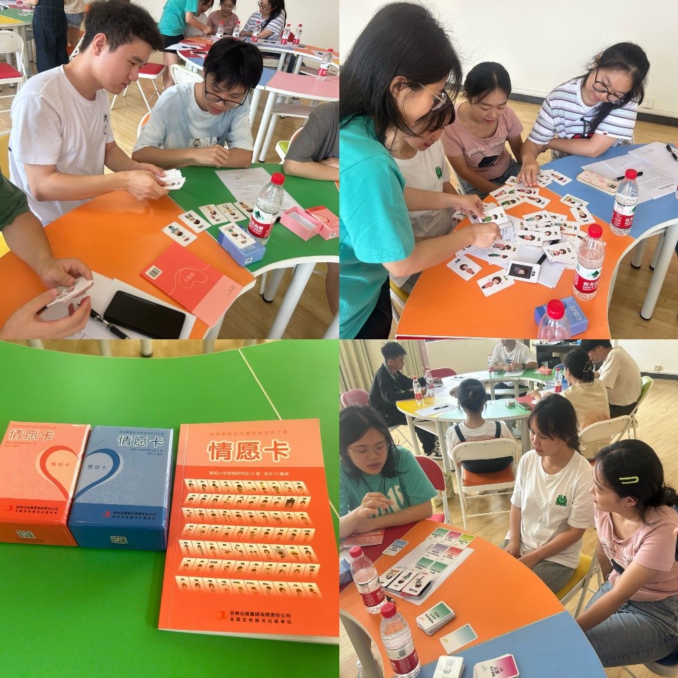 活动过程中,俸老师以讲述自身情绪体验的经历作为示范,教授情愿卡的使用方法。通过小组分享和讨论,心理委员对情感卡和愿望卡分别进行体验和操作,以此来促进情绪、情感的觉察和表达,同时,引导心理委员理解他人的情感、学会珍视自己的愿望,更应尊重他人的愿望。在真诚接纳、充分理解、心怀感谢的氛围中,以提升心理委员的共情能力,更好的做好朋辈互助工作。