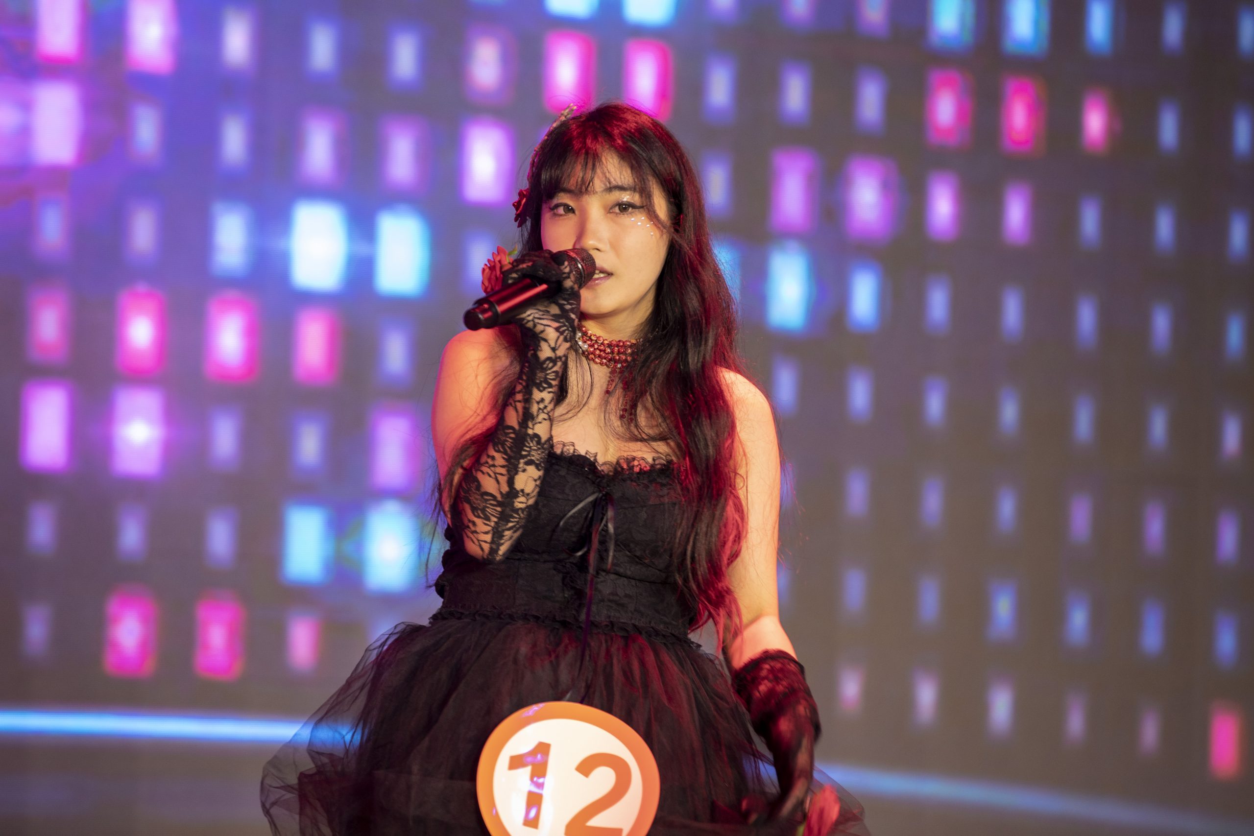 廖钕秀同学以高亢激昂的嗓音唱出了众生在红尘中无奈的挣扎,亦唱出了世间男女纠缠于感情的迷离,掀起了现场的高潮。