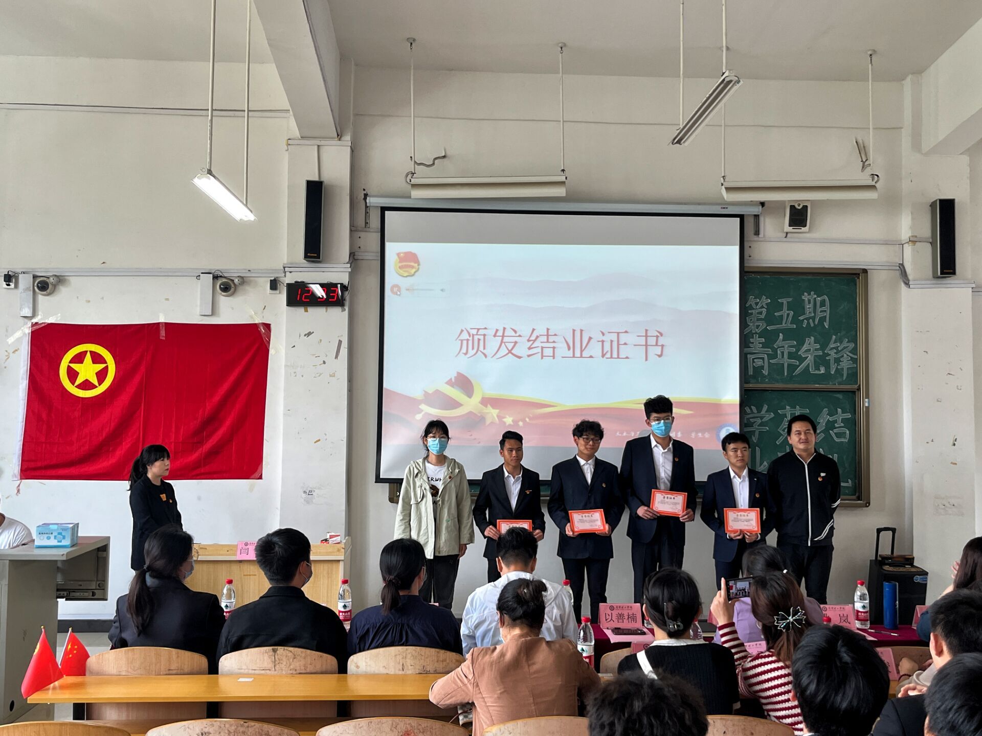 为引导我院青年学子坚定对党、团科学理论信仰、提升团学修养水平,经过八节理论课的学习,我院于5月12日在4303教室举行第五期青年先锋学苑培训班结业典礼,莅临本次结业典礼的嘉宾有我院分团委书记徐远菁以及各辅导员。