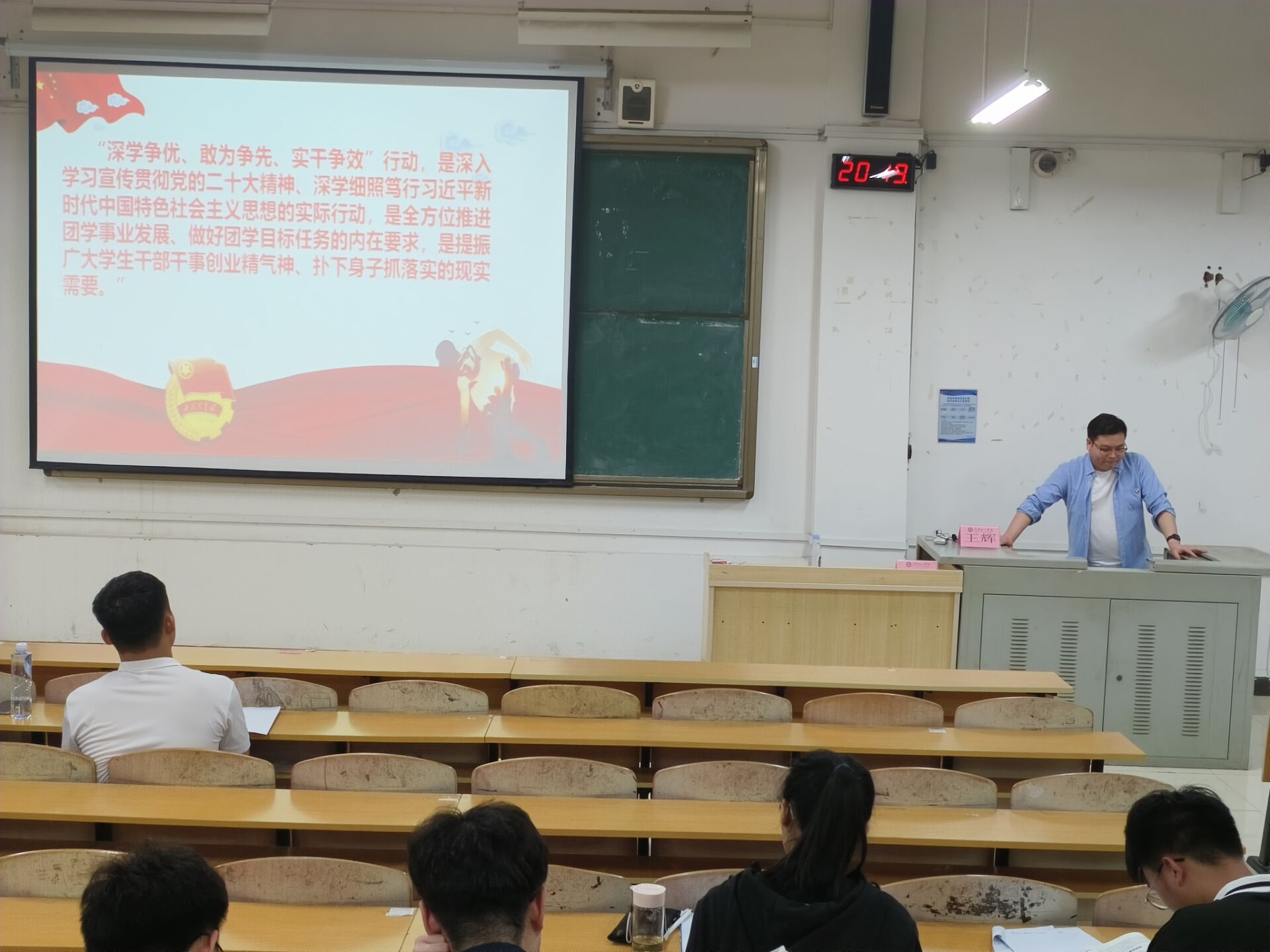 王辉老师正在讲述学生干部应有的品质
