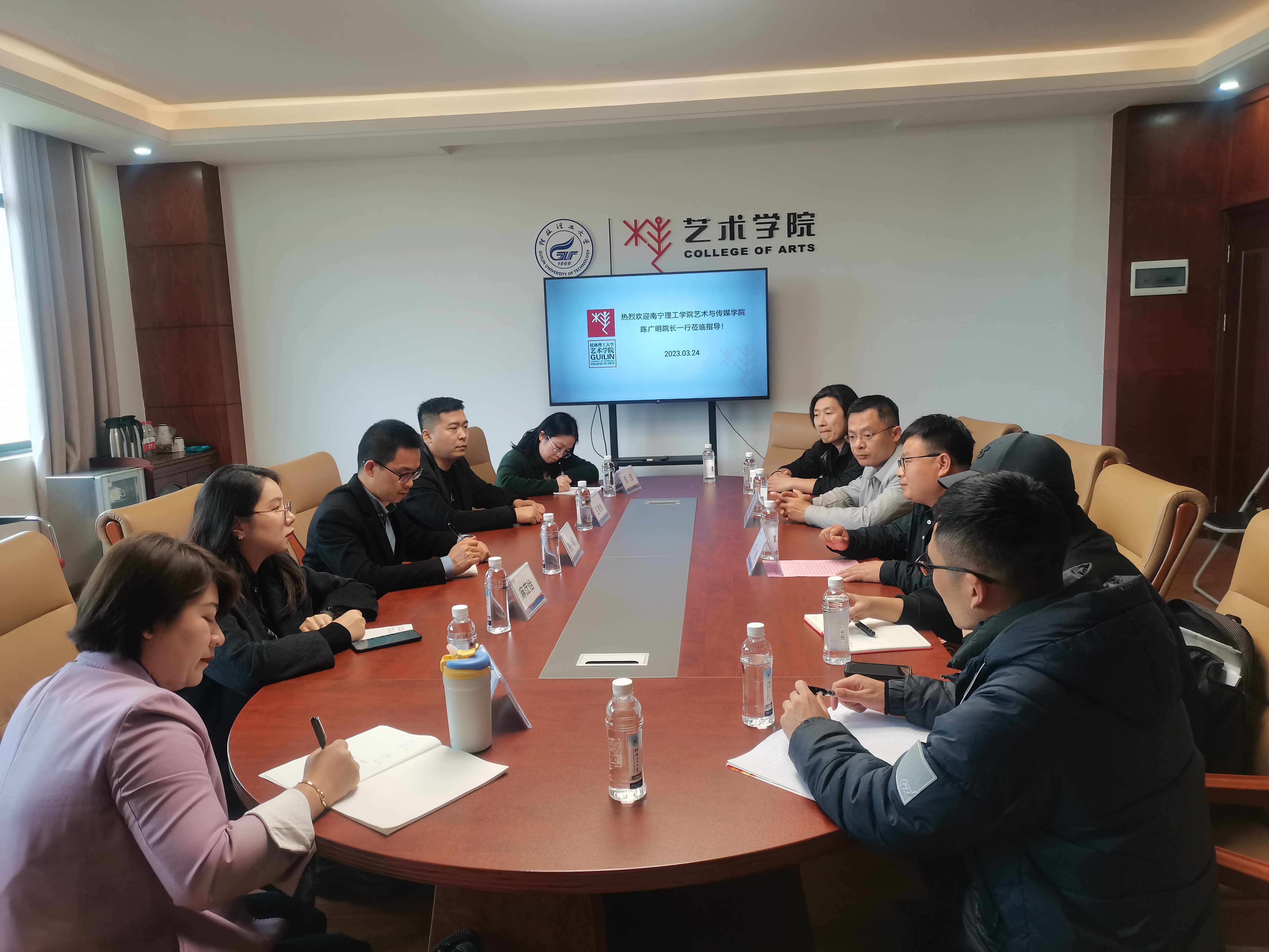 为进一步加强院际之间的交流与合作,推进师资队伍建设及专业建设的交流,同时学习兄弟院校在新文科建设工作上的先进经验和做法,2023年3月24日下午,在我院院长陈广明的带领下,视觉传达设计专业、数字媒体艺术专业、环境设计专业等教研室教师代表一行5人前往桂林理工大学艺术学院进行交流学习。