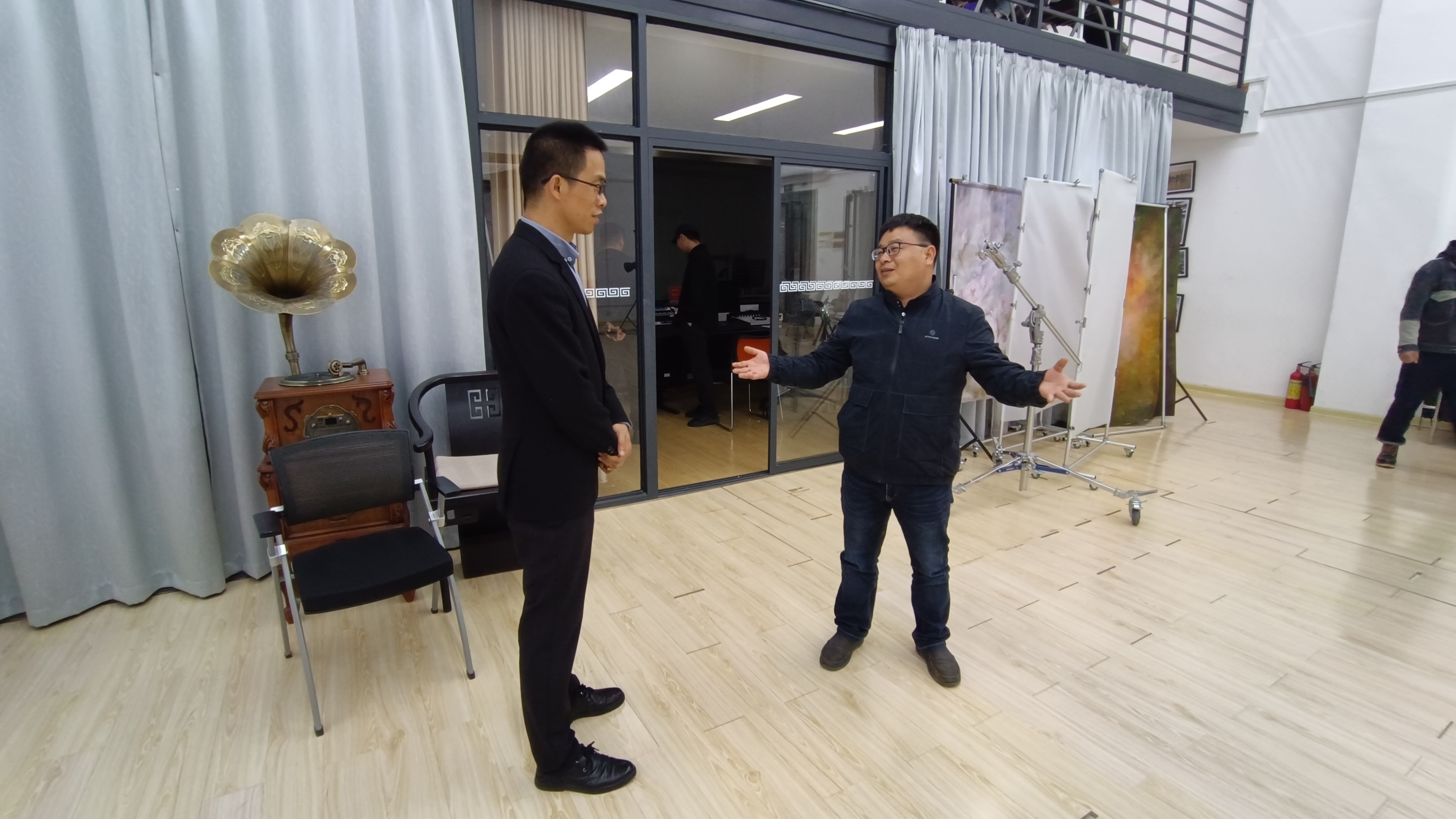 参观美术馆现场,双方气氛融洽