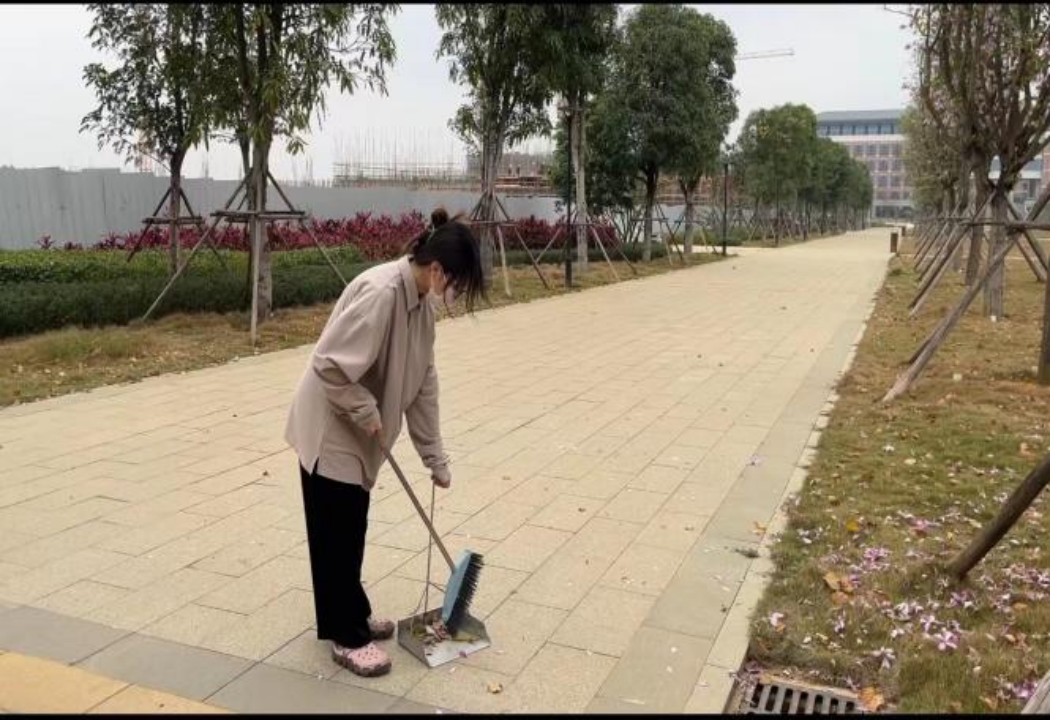 同学们认真、负责,为校园的整洁美丽贡献自己的力量。