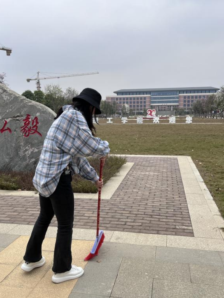 本次活动播音2108班以小组形式进行清扫教室 、食堂门口、学校大门、宿舍楼梯间,同时对校园的平衡车摆放整齐。