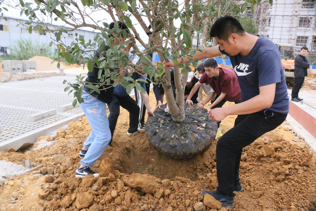 在植树现场,校领导带头挥锹、挖坑、培土,师生们扶树稳苗、挥锹铲土,培土围堰、提水浇灌,认真栽种树木,呈现出一片繁忙有序的景象。经过一番紧张的劳动,一株株树木栽植完毕,迎风挺立,充满生机。