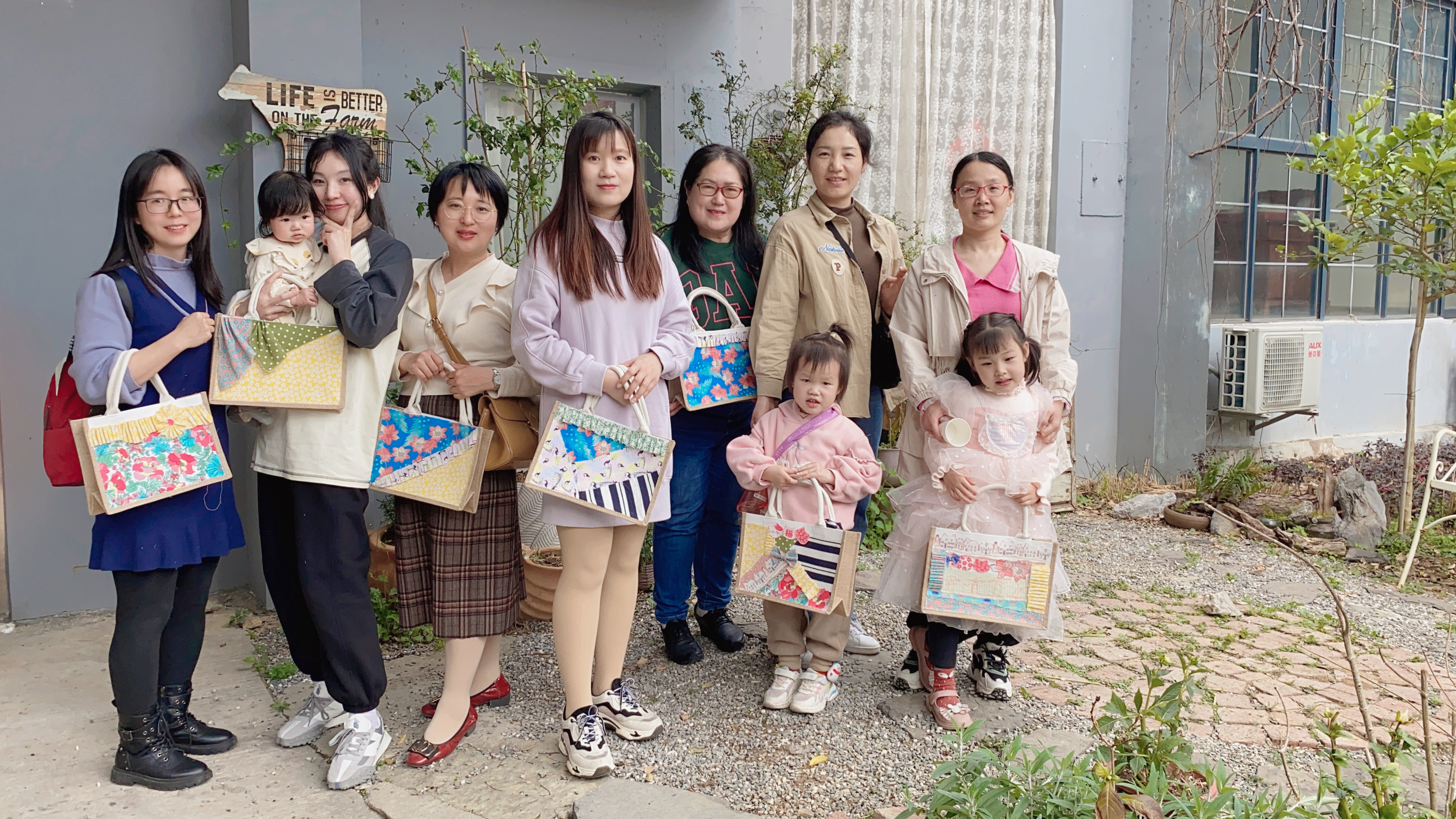 活动现场,手工老师为女教工们详细讲解布艺拼贴手提袋的制作方法和注意事项,并给女教师们进行“一对一”教学指导,女教师们一边制作手工布艺包,一边畅聊工作和生活,现场欢声笑语不断,气氛轻松而愉快。经过两个多小时细致的穿针引线,大部分的手作包包惊艳亮相。