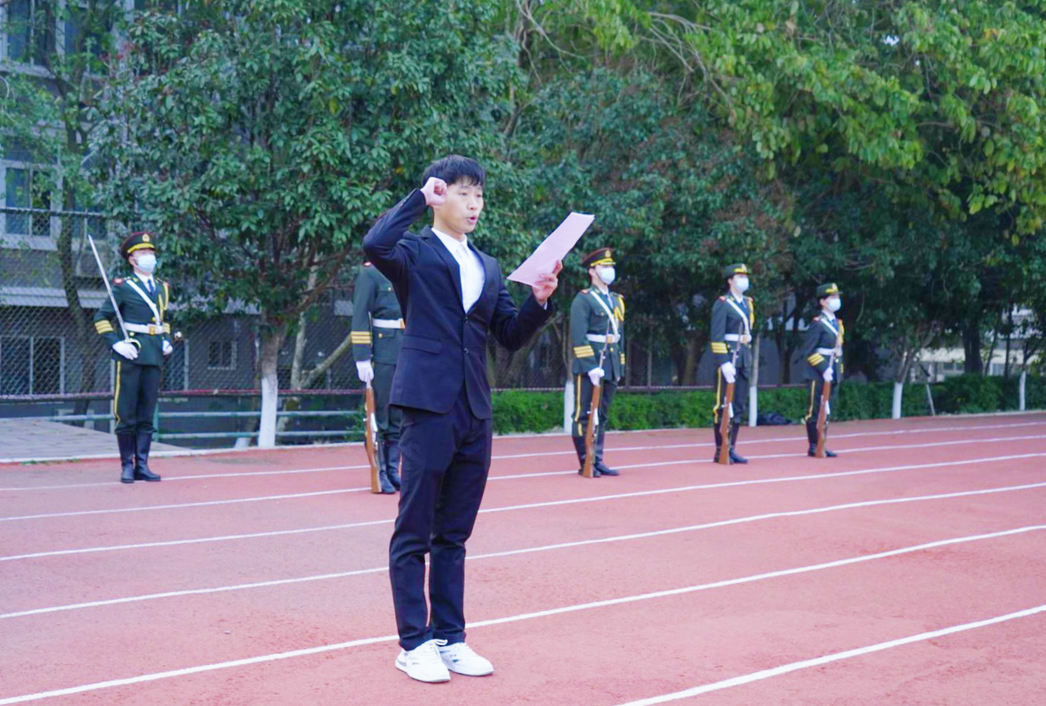 升旗仪式完毕,我校教师、文理学院分团委书记覃蓝天代表学校全体老师致辞;我校优秀学生代表:土木与工程学院工程造价2001班郑鹏翔同学,商学院会计学2003班朱晨希同学,艺术与传媒学院主持播音专业2103班杨振雨同学共同于国旗下发言演讲,同时带领全体同学进行国旗下宣誓。这特殊的升旗仪式是面向广大南理学子们一节生动的思政课,引导着同学们学会感恩,学会团结,学会拼搏,激发内心热爱祖国、自强不息的激情。
