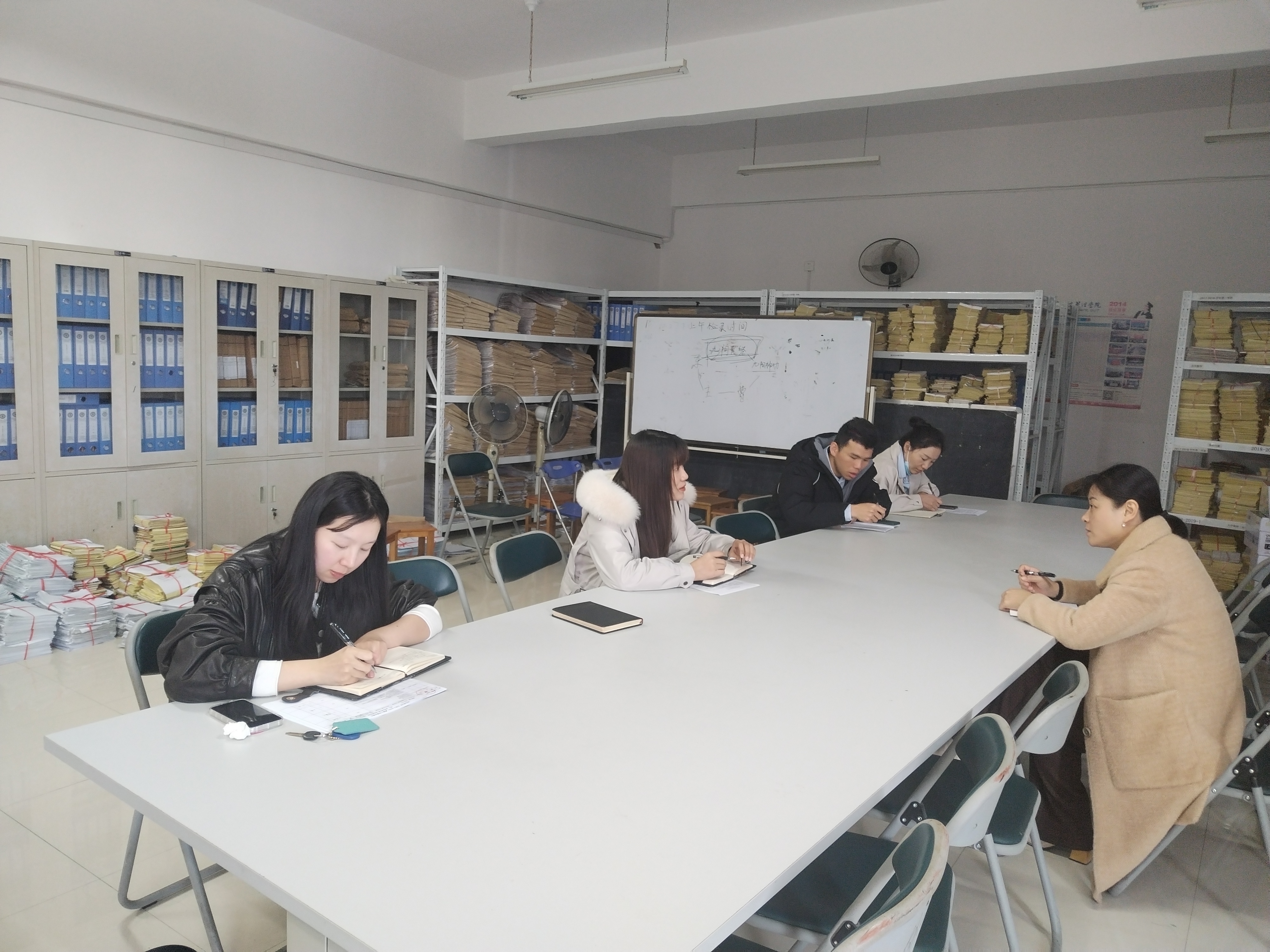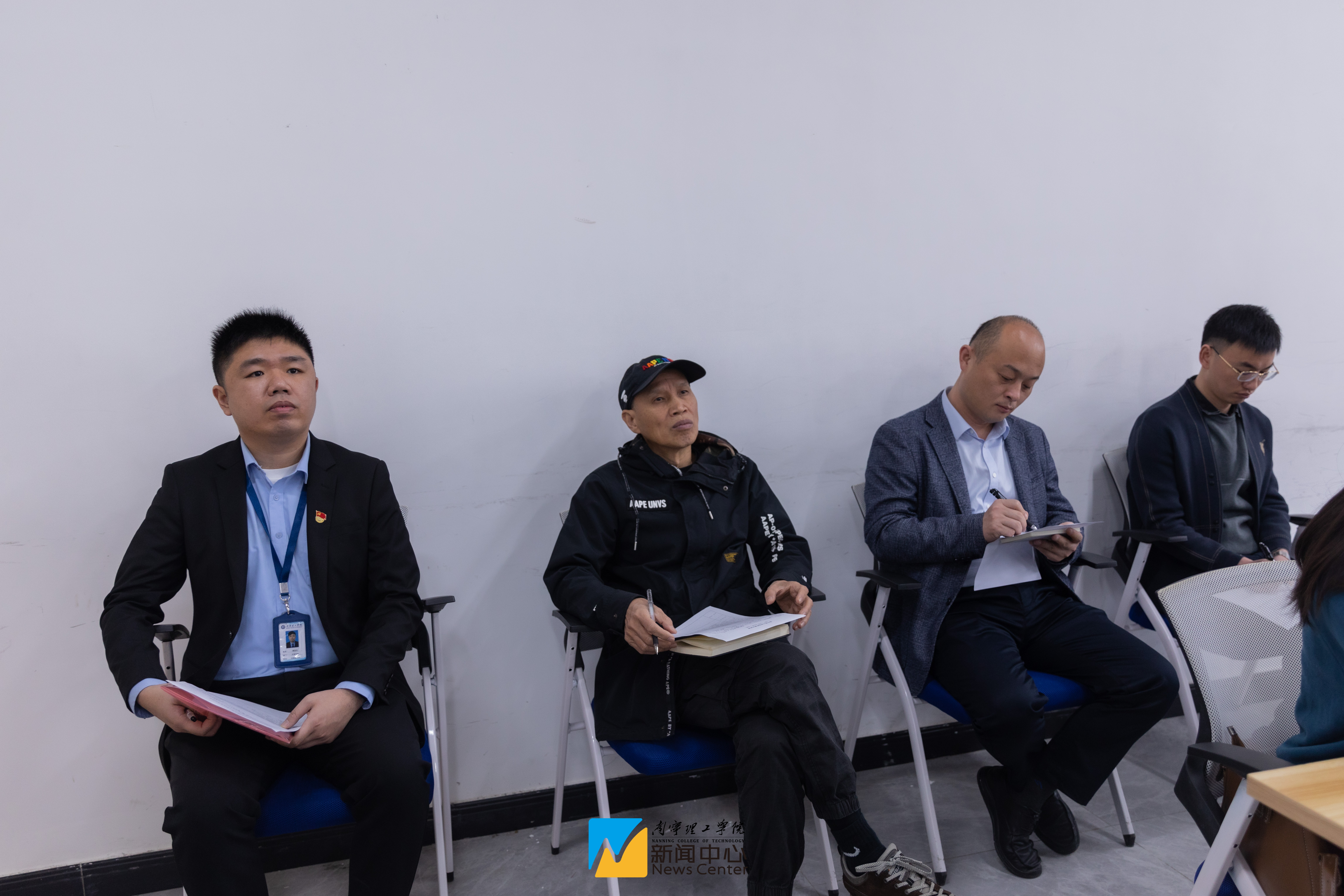 校领导认真听取汇报并详细记录,同时询问学院存在困难并提出针对性意见和建议。