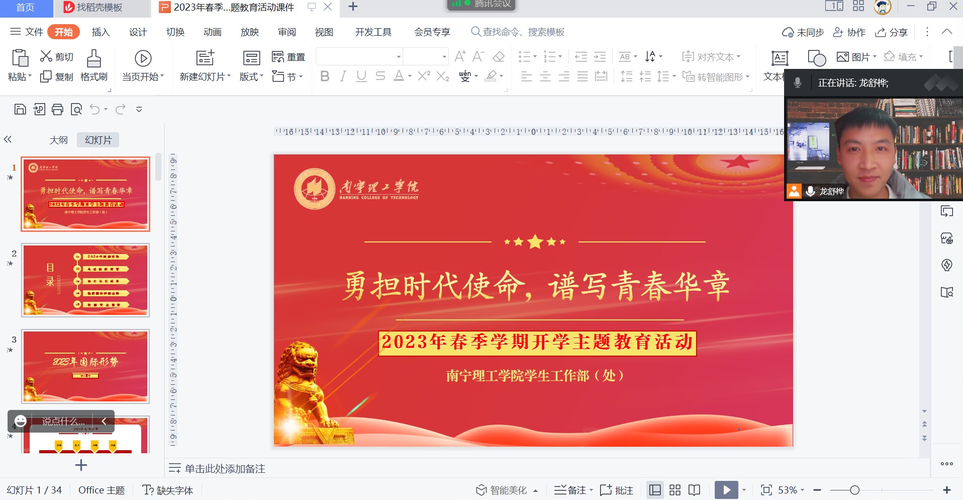 为落实学校2023年春季学期学生工作会议部署要求,做好新学期各项学生工作,2月26日晚上20:00点,我院2019级土木工程和工程管理全体学生通过线上的方式开展新学期第一课主题班会,会议由辅导员龙舒桦主持。