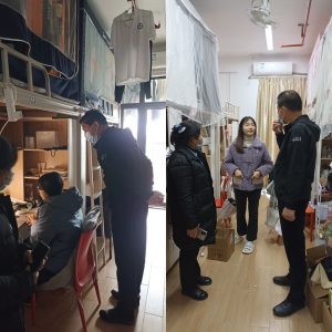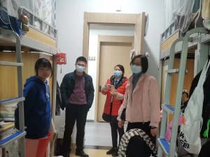 后勤老师分成三组到G1G2G16栋学生公寓楼,实地查看了学生宿舍的生活保障情况,并且认真询问同学们对学校环境的适应情况,同时叮嘱同学们要做好保暖措施。