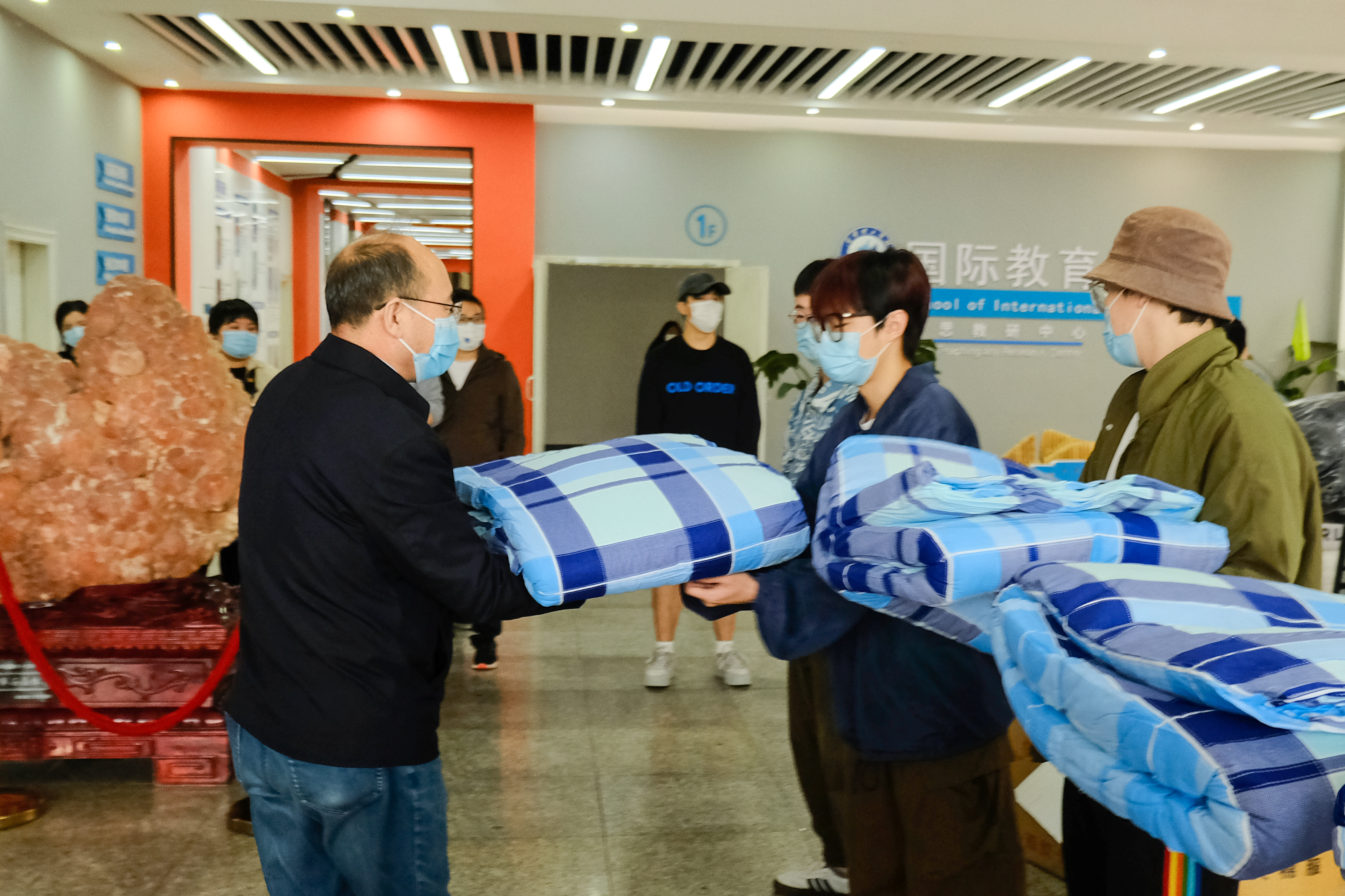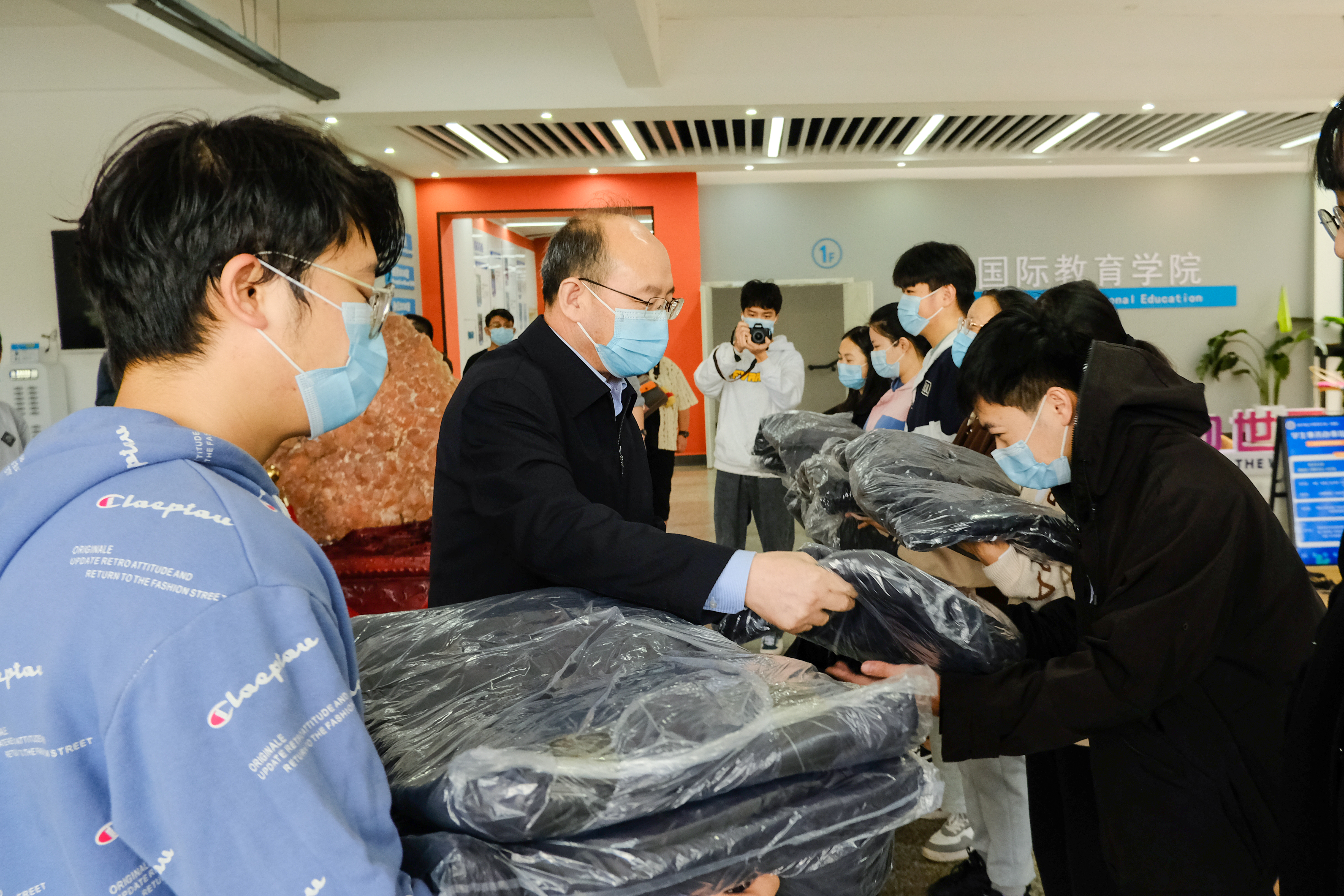 发放过程中,校长王金叶传达了桂林市和学校对全体学生的关怀。他表示,发放御寒物资,体现了党和国家对大学生的关怀,也体现了学校以人为本,全心全意为学生服务的理念,学校会始终将学生的健康安全摆在首位,希望大家要合理规划学习生活,努力学习、不负众望;正确理解当前疫情防控政策,积极配合学校管理,打赢疫情防控阻击战、歼灭战。