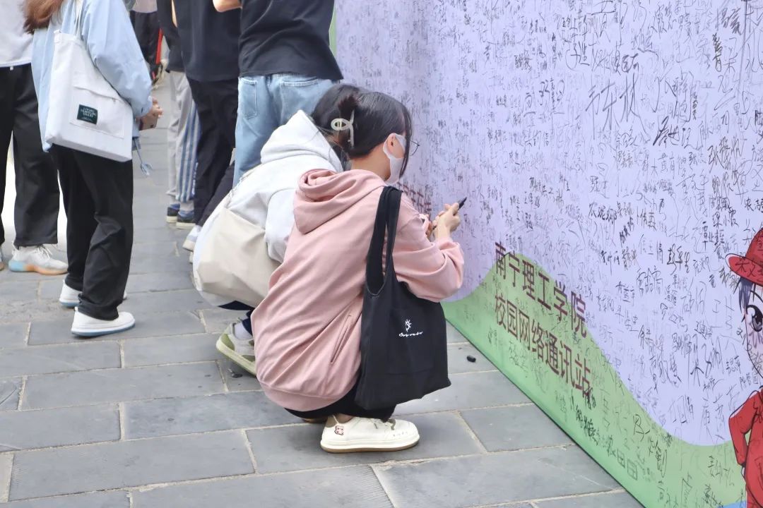 活动伊始,同学们热情高涨,对本次巡展活动表露出极大兴趣,纷纷驻足于宣传海报阅读相关信息,纷纷与在场人员积极交流活动,耐心地为同学们进行讲解,不仅使同学们对中国大学生在线有深刻的了解,同时也对本校的南理生音公众号有了初步的认知。同时学生工作助理中心的同学们对中国大学生在线和在线举办的活动也有了更深层次的感悟。