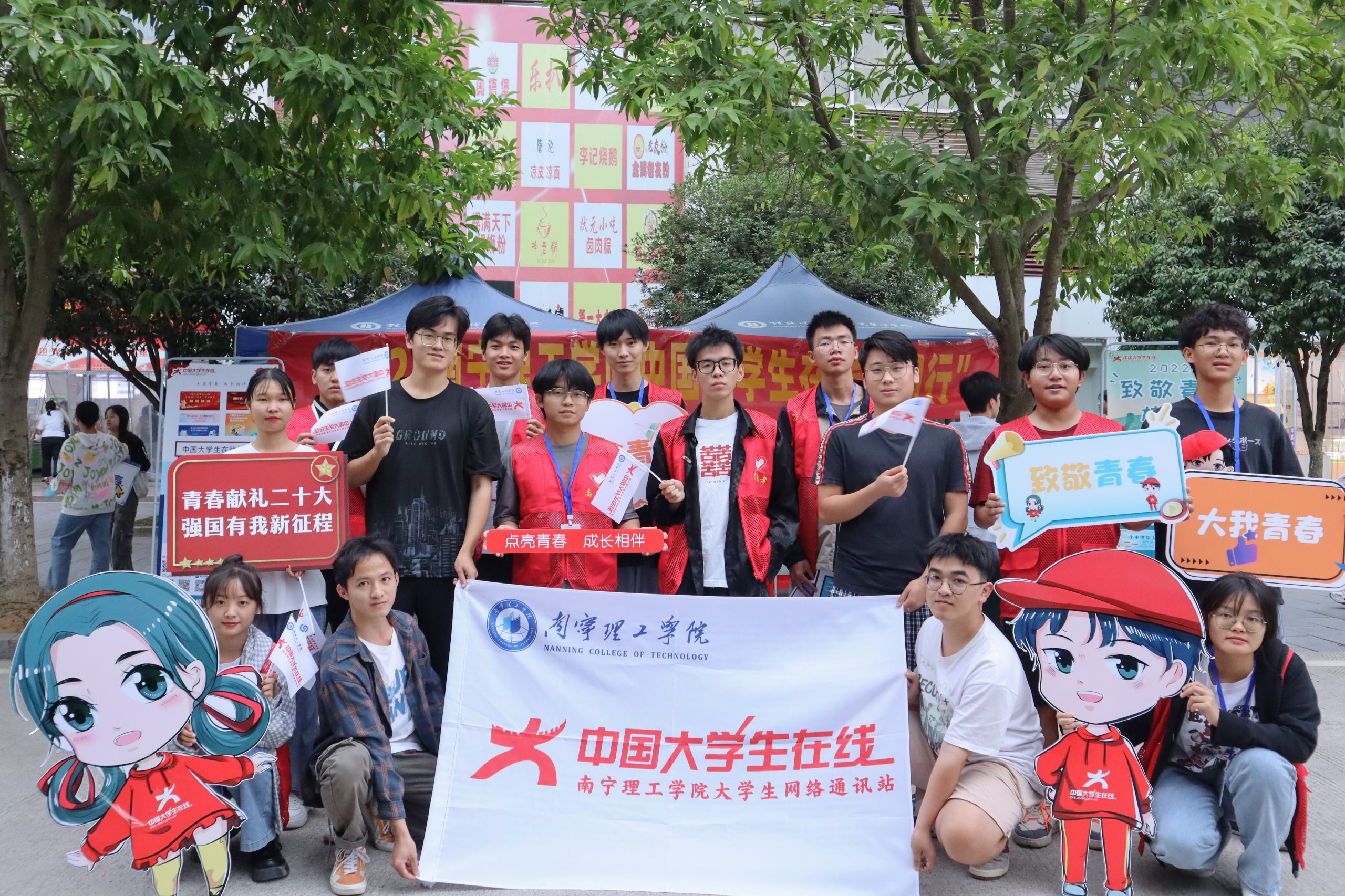 金秋十月,晚枫满园。10月27日上午,中国大学生在线2022校园行巡展于南宁理工学院桂林校区第一食堂前举行。南宁理工学院学生工作助理中心的同学们通过设立宣传点,展示纪念品,现场进行介绍和关注微信公众号的方式,向同学们介绍中国大学生在线平台。
