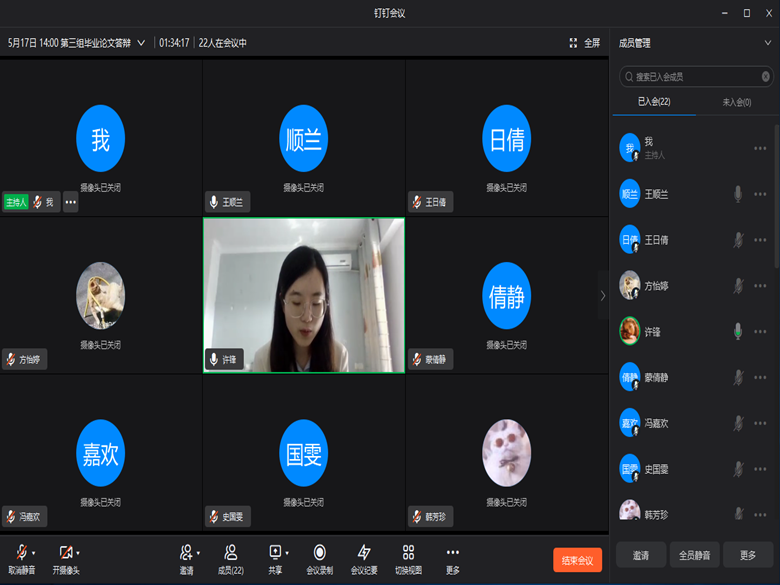 在疫情防控的特殊形势下,结合本学期教学工作总体部署,文理学院2022届英语与商务英语专业本科毕业设计(论文)答辩工作于6月9日以“云端”模式下完满结束。
