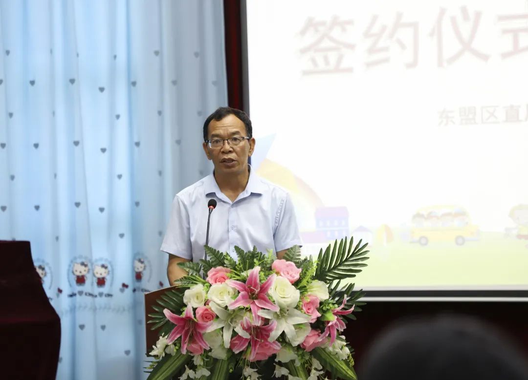 东盟经开区教育系统党委书记隆忠在致辞中指出,南宁理工学院与东盟直属幼儿园开展合作是深化产教融合、协同育人的一项重要举措,诠释了理论与实践相结合的新理念,做到了应社会所需、与市场接轨,为教育行业发展带来了契机,希望此次校企合作能够谱写新时代教育校企战略合作的崭新篇章。