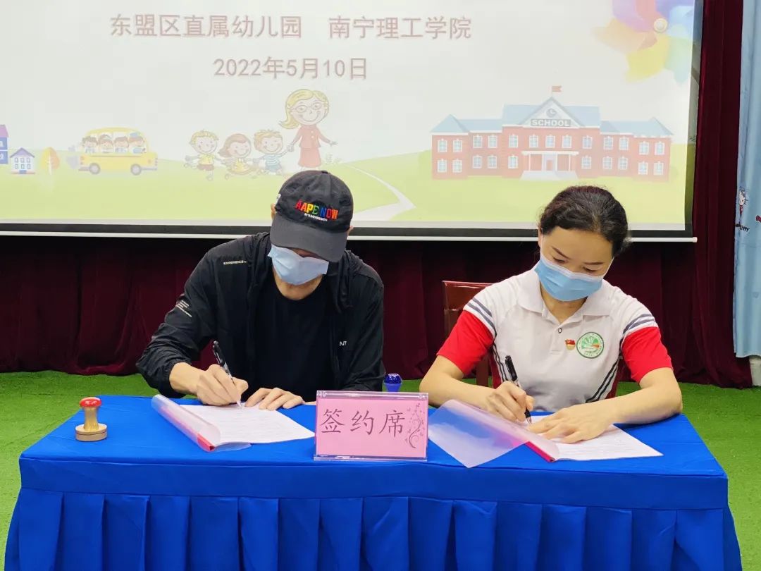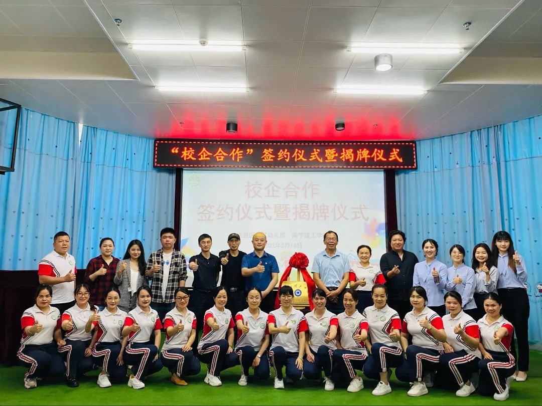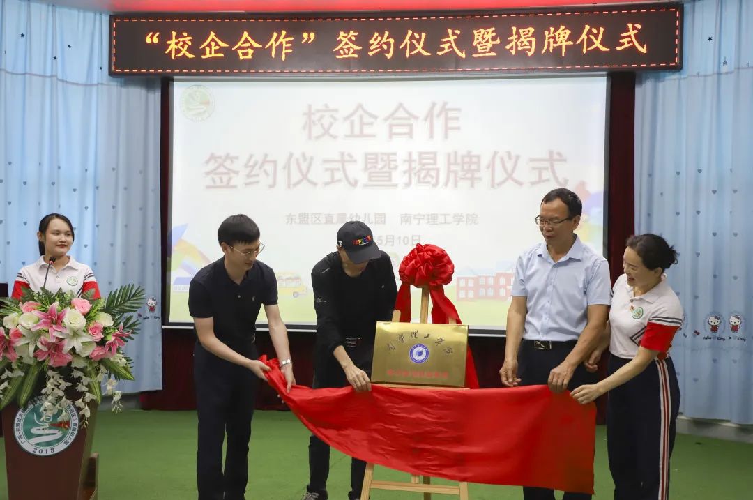 为促进理论教学与实践教育的深度结合,5月10日下午,我院与东盟区直属幼儿园实习实训就业基地挂牌仪式,揭牌仪式在直属幼儿园举行,东盟经开区教育系统党委书记隆忠、学院院长何宝珠、党总支书记刘武钢、直属幼儿园园长韦海英及双方教师代表出席本次揭牌仪式。