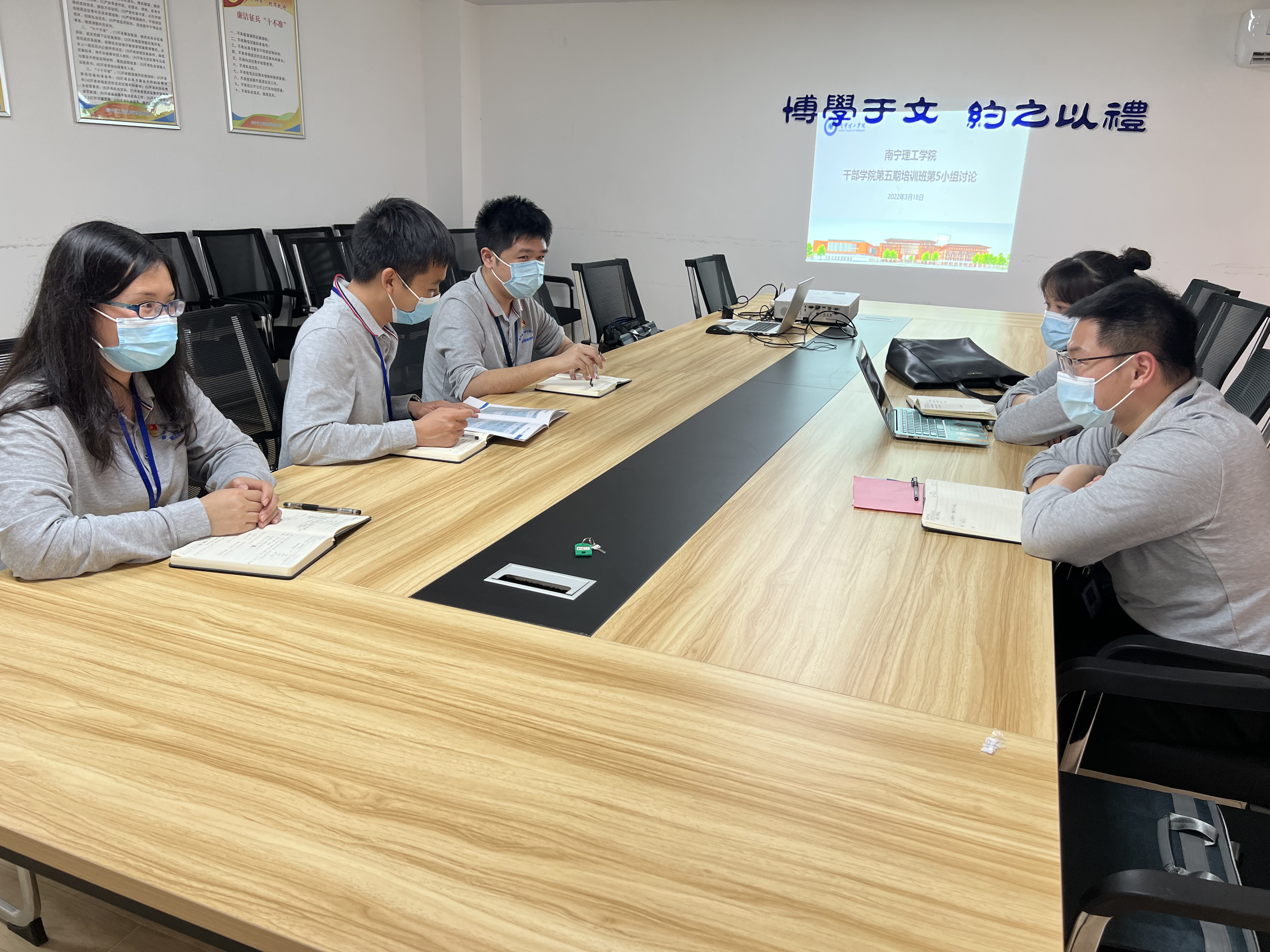 2022年3月18日下午,南宁理工学院干部学院第五期培训班课题研讨会以分小组探讨的形式进行,各小组分别前往东盟校区各会议室举行。