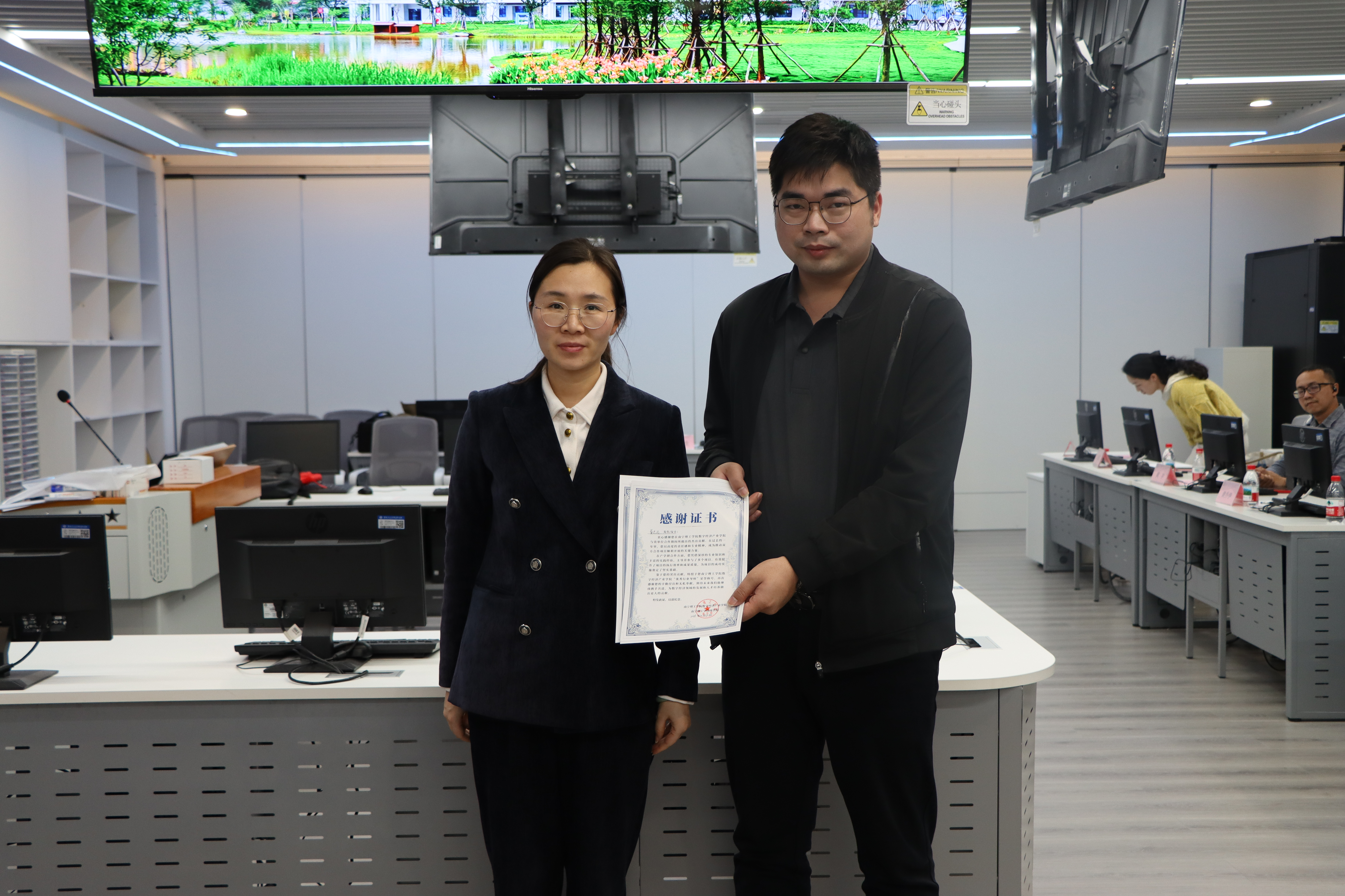 茶歇期间,企业嘉宾、学术导师与学生自由交流,进一步沟通岗位需求、学术研究与个人发展等方面的诉求,为后续合作与职业对接奠定基础。随后,主持人对本次活动进行总结,梳理核心交流成果。随后,学院领导为企业及学院工作人员颁发 “校企合作共建单位突出个人” 证书,以表彰其在校企合作中的突出贡献。最后,全体参会人员合影留念,记录这一重要时刻,专业负责人再次致谢各方支持,活动在温馨的答谢氛围中圆满落幕。