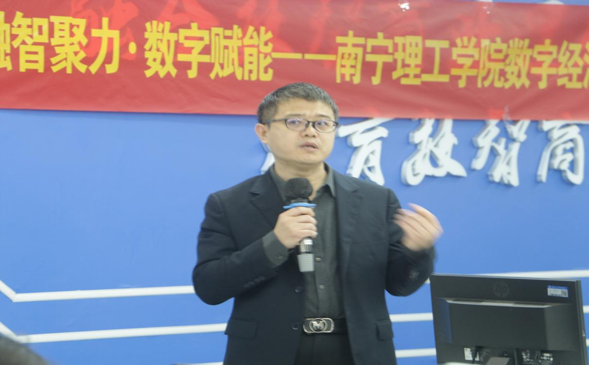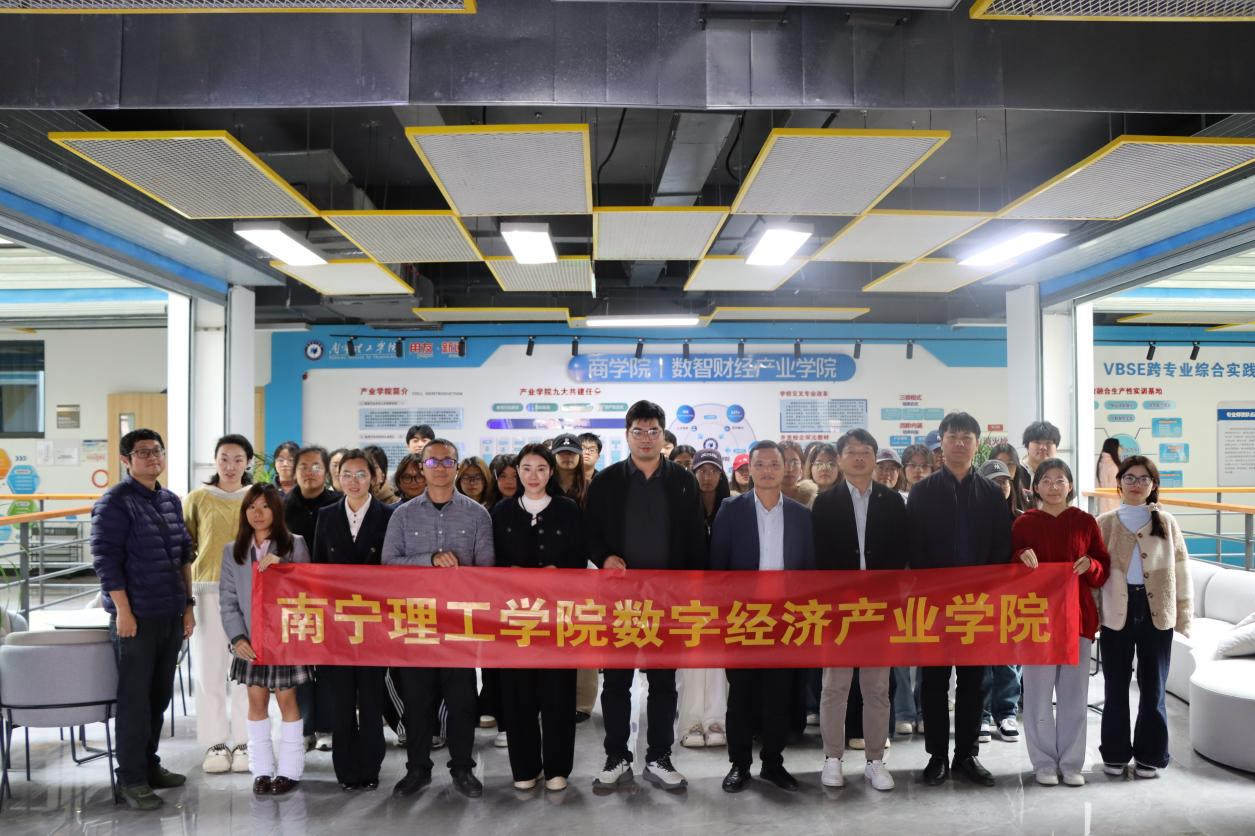 12月 30 日,在南宁理工商学院数字经济产业学院的支持下,南宁理工学院以 “融智聚力・数字赋能” 为主题的数字经济产业学院校企融通答谢会在 A4304商科综合实训中心顺利举行。活动汇聚数字经济领域知名企业代表、学院学术导师、师生代表及学工辅导员,通过行业分享、互动交流与答谢致敬,深化校企协同育人共识,搭建产教融合新桥梁。