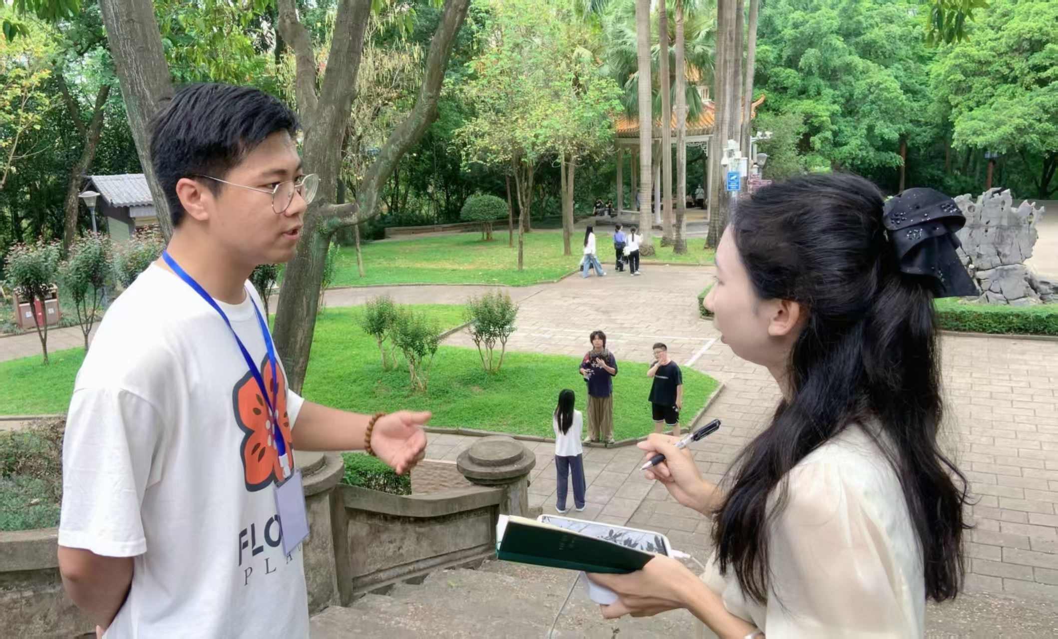 学生在人民公园采访
