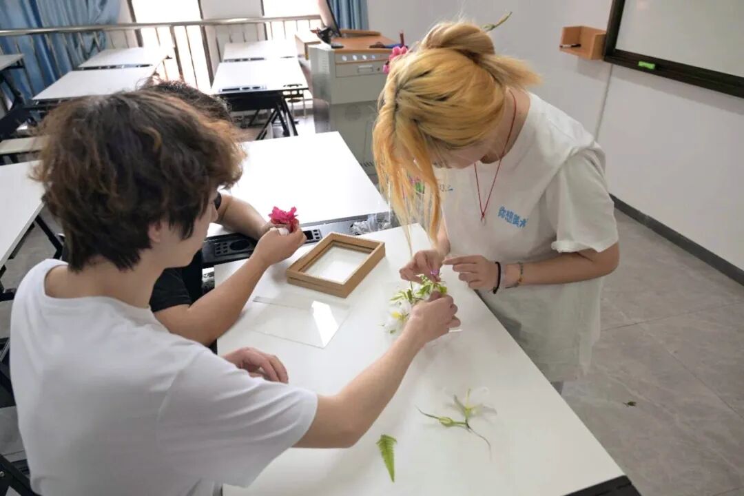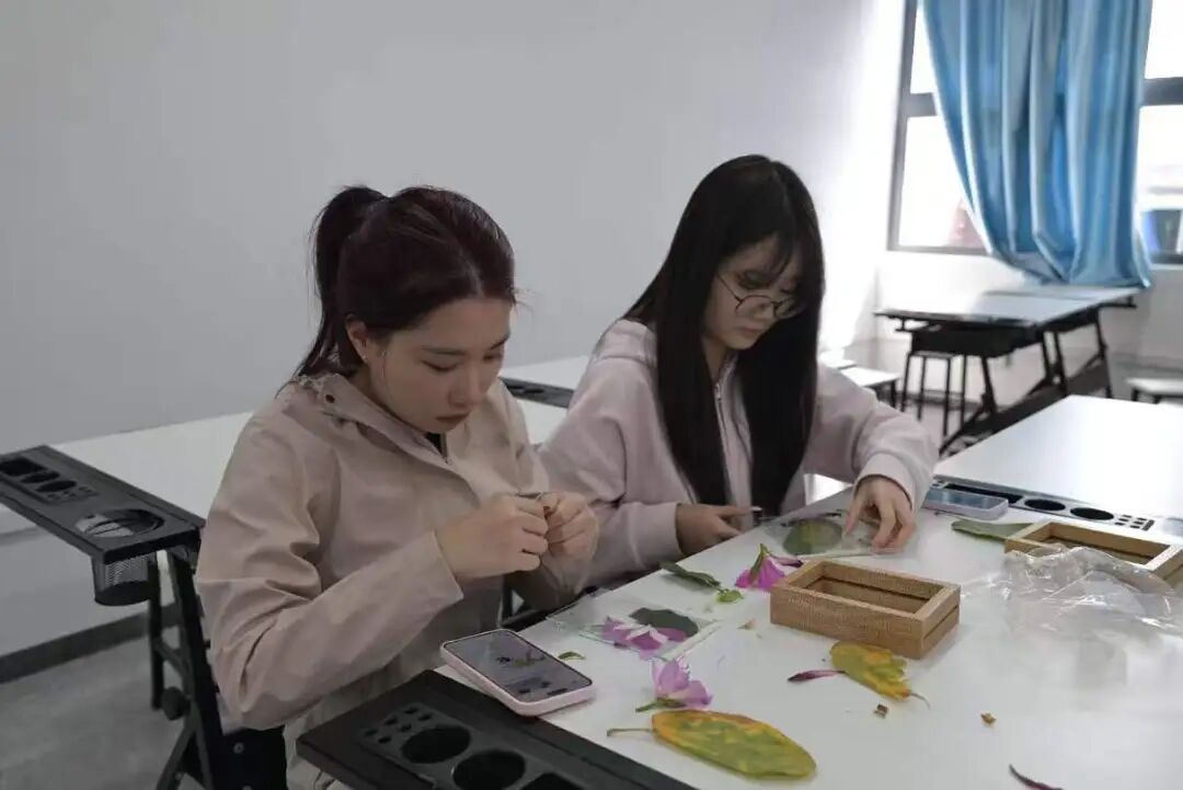 活动的核心亮点在于以志愿服务为根基,用艺术创作传递精神力量。志愿者同学们先投身学雷锋志愿服务与植树节环保实践,在清扫、护绿的行动中践行奉献精神;随后在学院创意工作室,将清扫的落叶和花瓣等自然素材,充分发挥艺术专业优势,精心制作成一件件充满巧思的创意摆件。这些作品既是志愿服务成果的艺术升华,也在自然之美与创意表达中,实现了雷锋精神、环保理念与艺术才华的有机融合。
