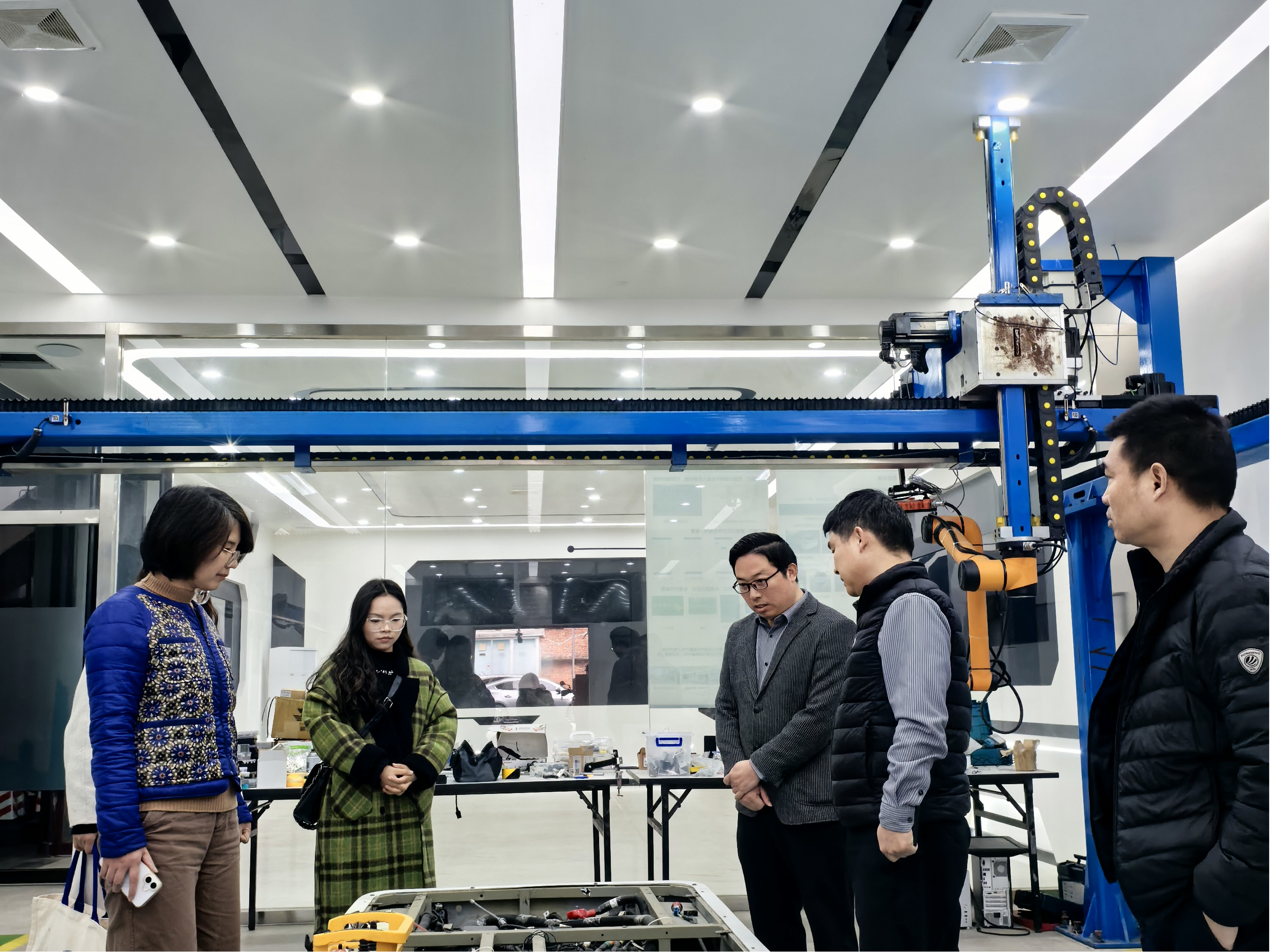走访团队首站抵达柳州五菱汽车工业有限公司,在企业负责人的全程陪同下,团队实地察看了新能源汽车维保、智能制造、无人驾驶等实训中心,详细了解企业生产工艺流程、技术研发方向、产业发展布局及人才需求标准,近距离感受企业“务实创新、精益求精”的发展理念,直观领略智能制造产业的科技魅力与发展活力,为后续校企协同育人找准切入点。