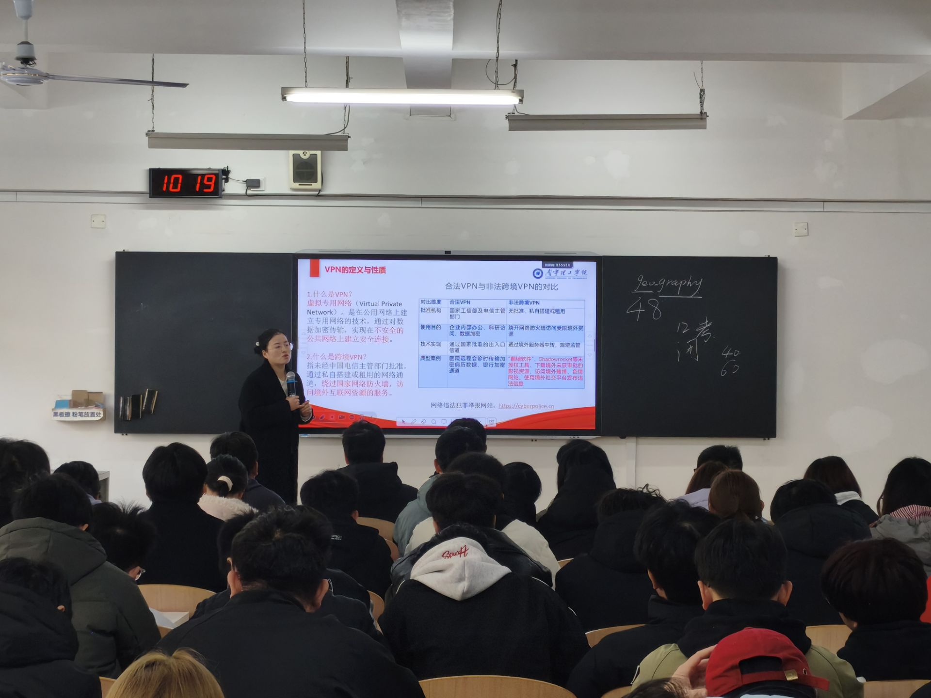 活动中,辅导员带领学生深入学习新时代青年的使命与担当,引导学生将个人理想融入国家发展大局,坚定理想信念、厚植家国情怀。在思想政治教育引领下,学风建设教育根据不同年级各有侧重:大一、大二重点强调课堂纪律、考勤规范和学业规划,要求学生严格落实“三带”、提前到课、不做“低头族”,端正学习态度;毕业班则聚焦就业指导与学术诚信,提醒学生警惕求职陷阱、坚守诚信底线,将学风建设与就业发展有机融合。网络安全教育作为本次班会的重点内容,辅导员围绕“筑牢安全防线,守护平安校园”主题,结合不同年级实际,重点强化对“翻墙”行为的警示教育。此外,辅导员还围绕交通安全、宿舍消防安全等内容讲解防范技巧与应急方法,强化学生安全防范意识和自我保护能力。结合春季流行病高发特点,辅导员还普及了流感、诺如病毒感染等常见疾病预防知识,讲解科学防护措施与艾滋病防控要点,引导学生做好自身健康第一责任人。