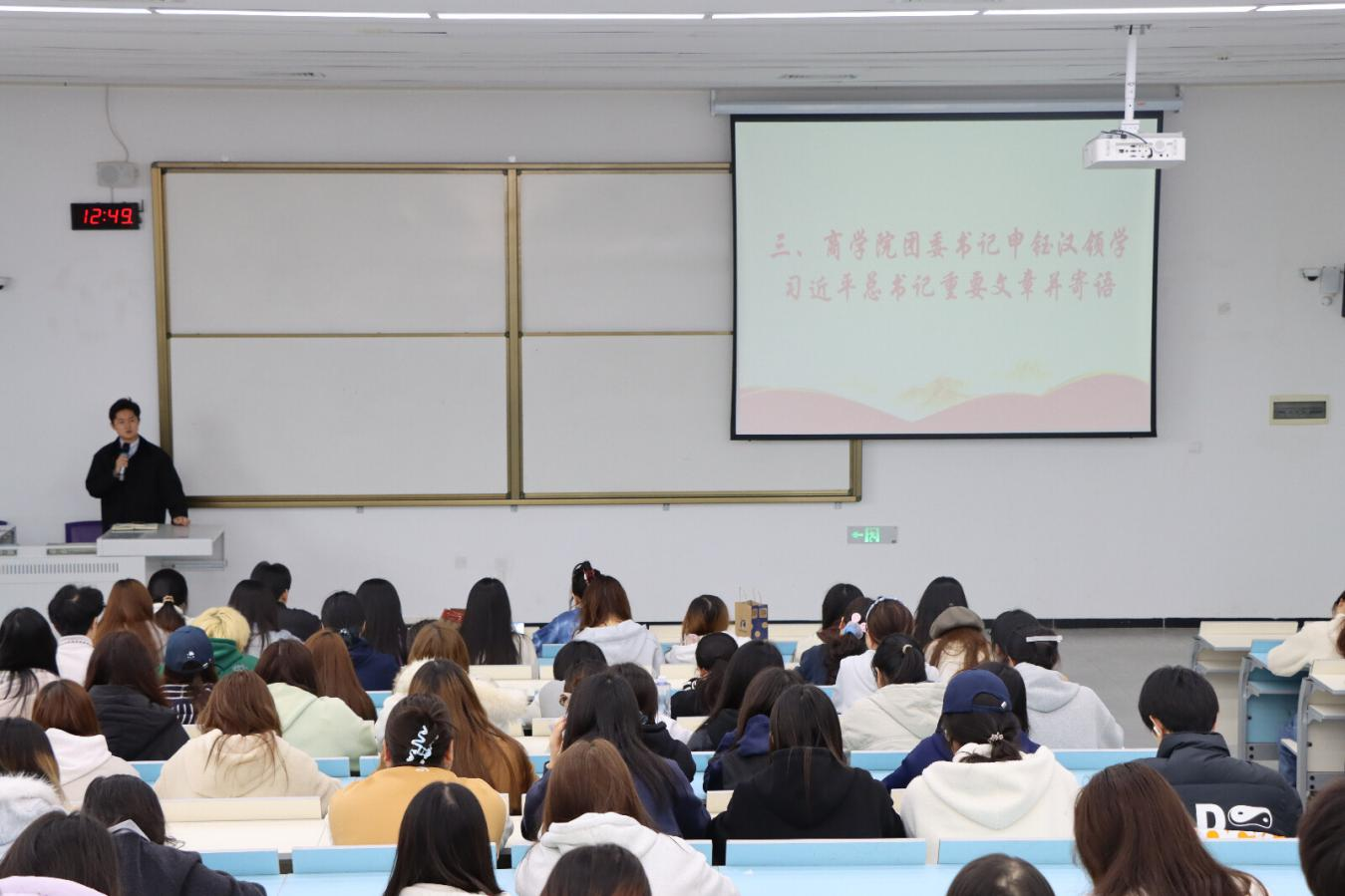 (图3:学院团委书记申钰汉领学习近平总书记重要文章)