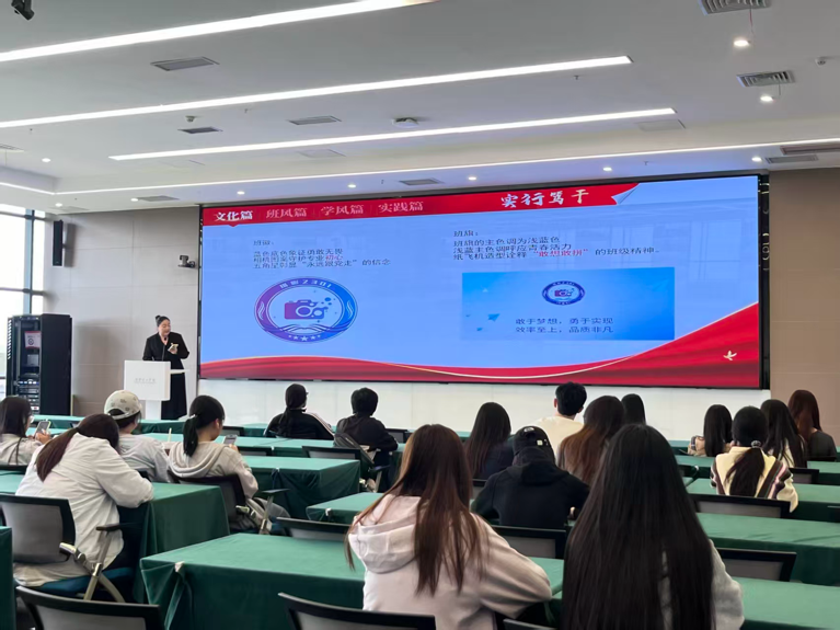 摄影2301班从班级文化、思想建设、学风培育、实践育人四方面作建设成果汇报。该班以“敢于梦想、勇于实现,效率至上、品质非凡”为准则构建文化体系,青年大学习参与率、入党申请书递交率均达100%,获评校级十佳先进班集体、优秀团支部等荣誉。学风建设中,班级实行阶梯式学习计划,实现零学业预警,学子斩获国家级奖项10项、省级12项、院级23项,技能证书考取率位居前列,多人获国家及校级奖学金;实践育人方面,班级累计志愿服务时长超158小时,学生积极参与“三下乡”、社区服务等活动,19人在校院级学生组织任职,尽显青年担当。