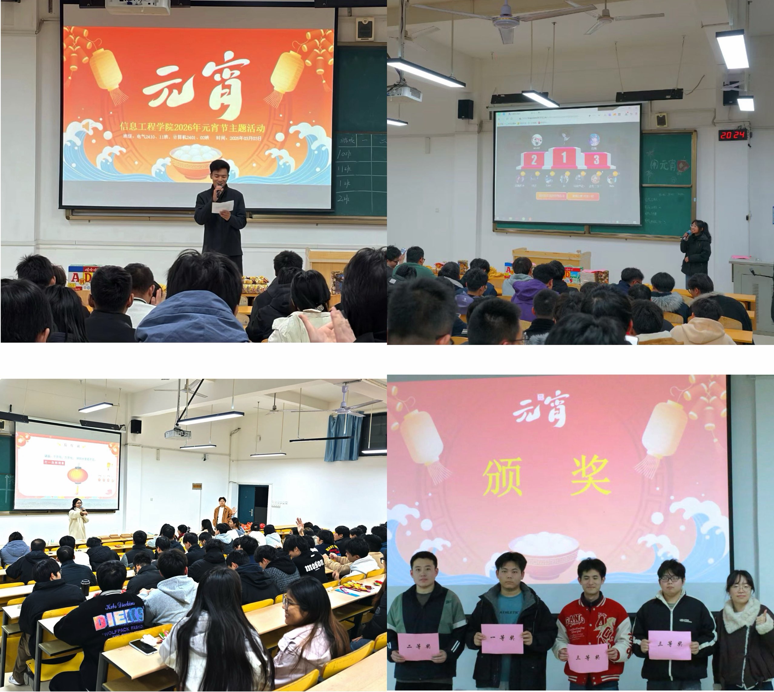为传承中华优秀传统文化,丰富学院师生校园文化生活,营造温馨祥和的节日氛围。3月3日,正值农历正月十五元宵节,信息工程学院采用“主会场集中联动+分会场精准覆盖”的模式,举办了一场兼具传统韵味与青春活力的元宵喜乐会。全院师生欢聚一堂,共赏民俗之美,共庆元宵之乐。