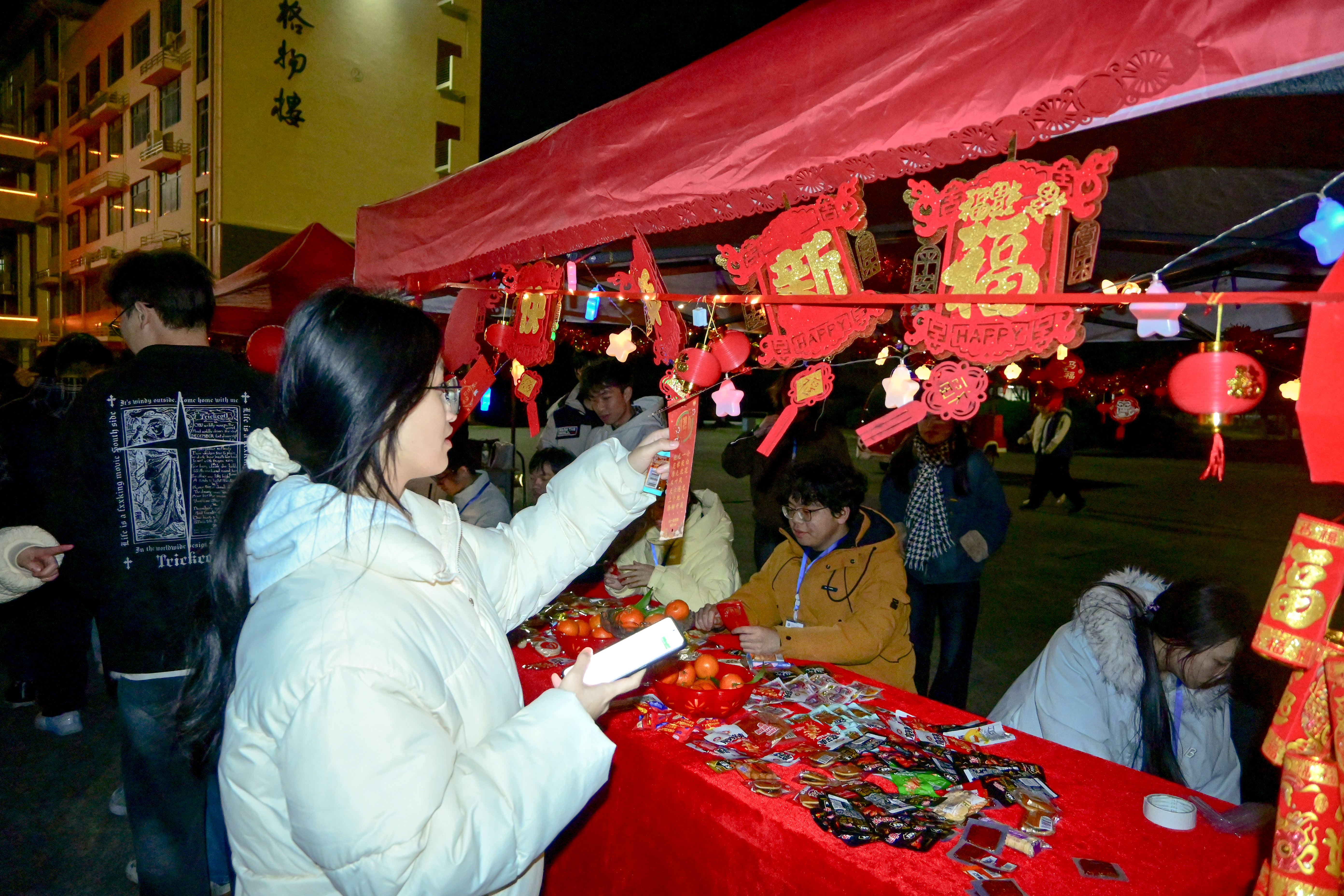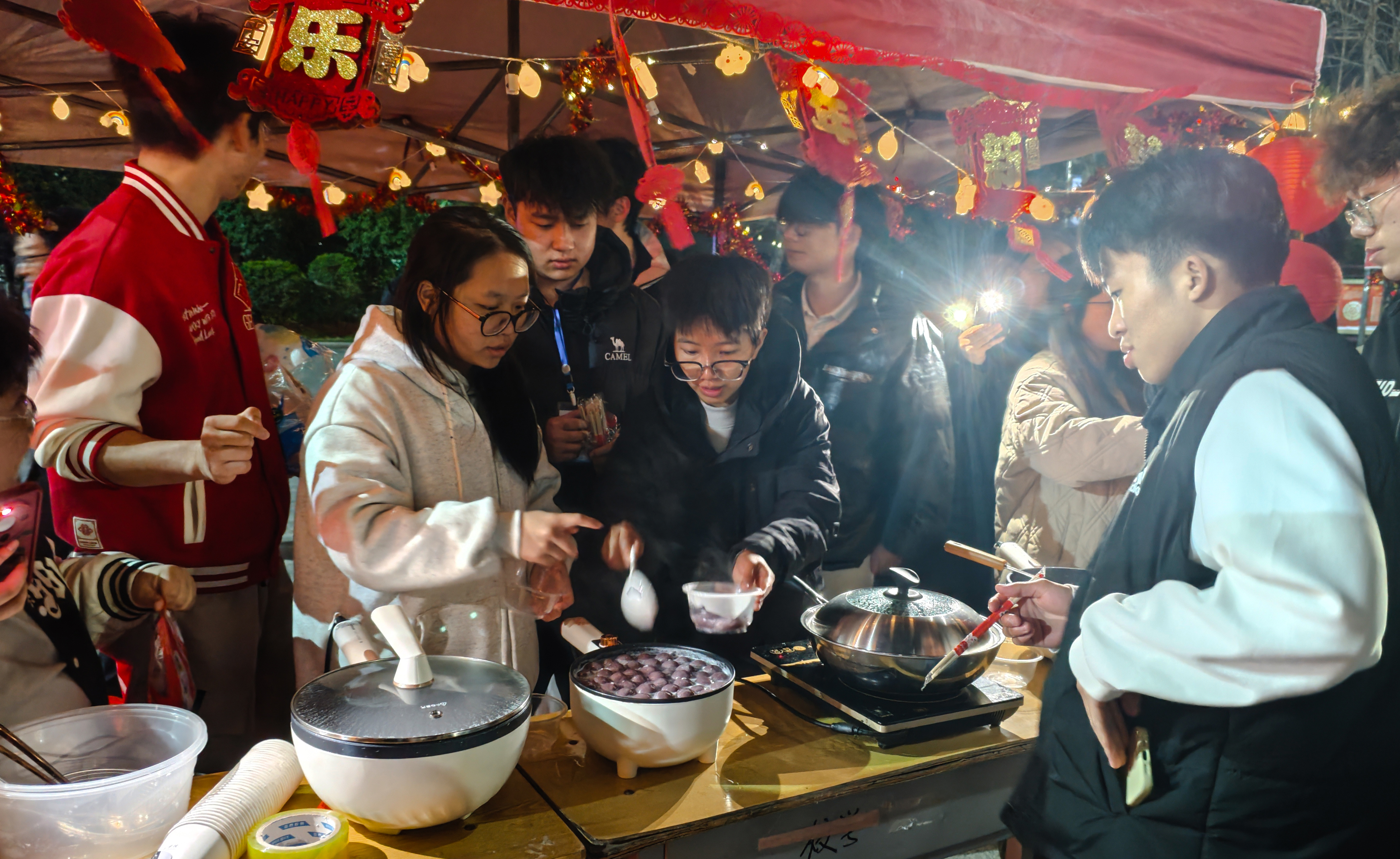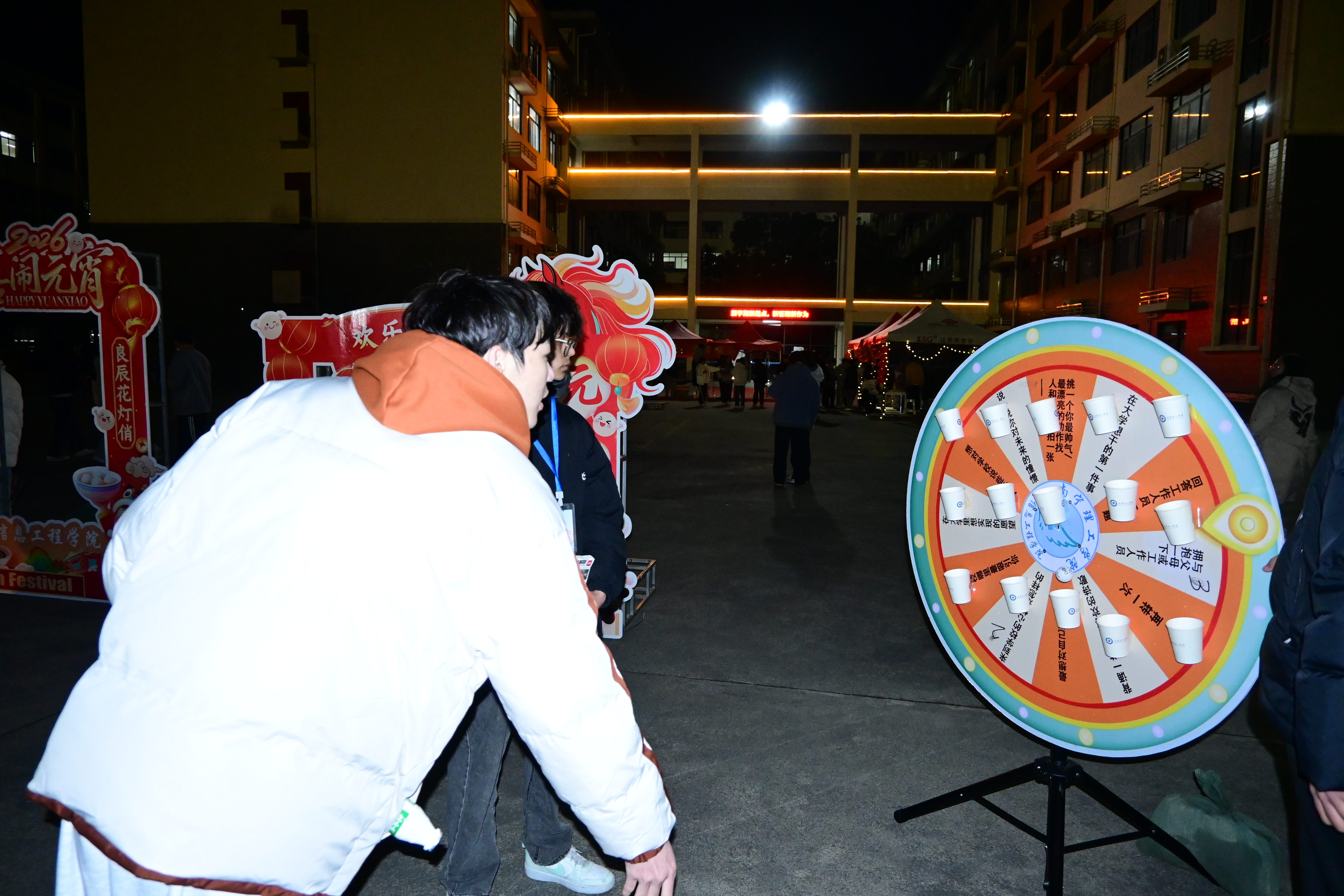 本次元宵喜乐会兼具趣味性、互动性与文化性的三大主题环节,学院主会场设于二教广场,活动现场张灯结彩,红彤彤的灯笼挂满长廊,五彩斑斓的灯谜纸条随风摇曳,香甜的元宵香气弥漫四周,处处洋溢着喜庆热闹的节日氛围。