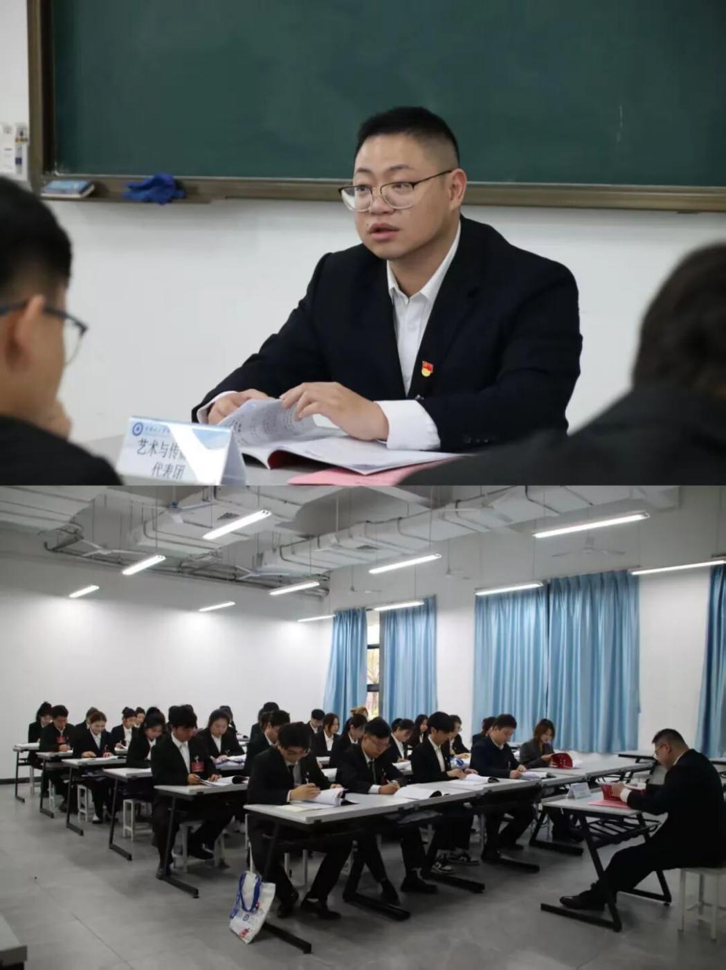 在各代表团讨论环节,艺术与传媒学院代表团在罗文俊老师的组织下结合艺术与传媒学院专业特色与团学工作实际,围绕校团委工作报告、学生会工作报告、委员候选人名单等核心议题,展开热烈研讨,逐一审议并一致通过各项议程。