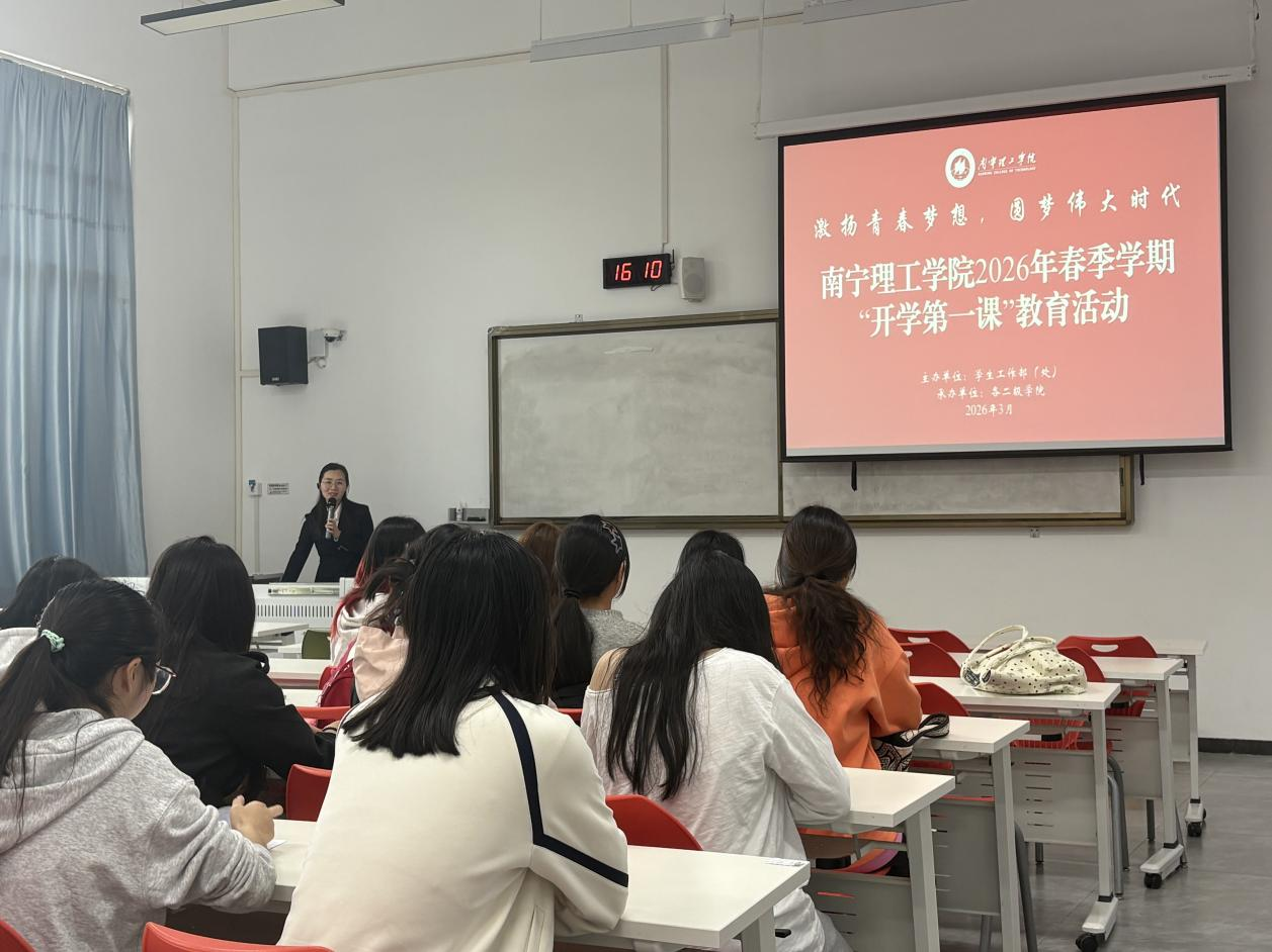为深入贯彻学校学生工作部(处)工作部署,引导学生快速收心归位、明确新学期成长方向,南宁理工学院商学院以“激扬青春梦想,圆梦伟大时代”为主题,组织开展2026年春季学期开学第一课教育活动,全院学生参与本次活动。