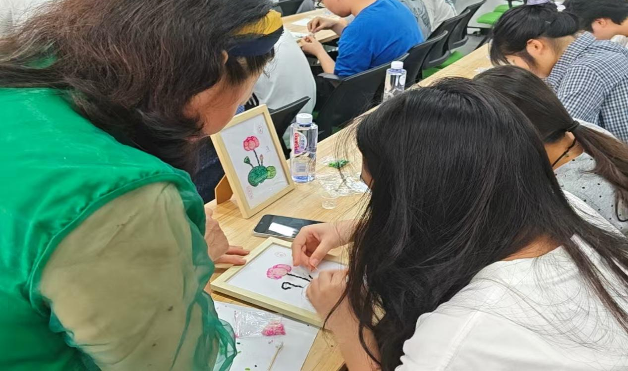 (曹老师讲解“点米成画”)