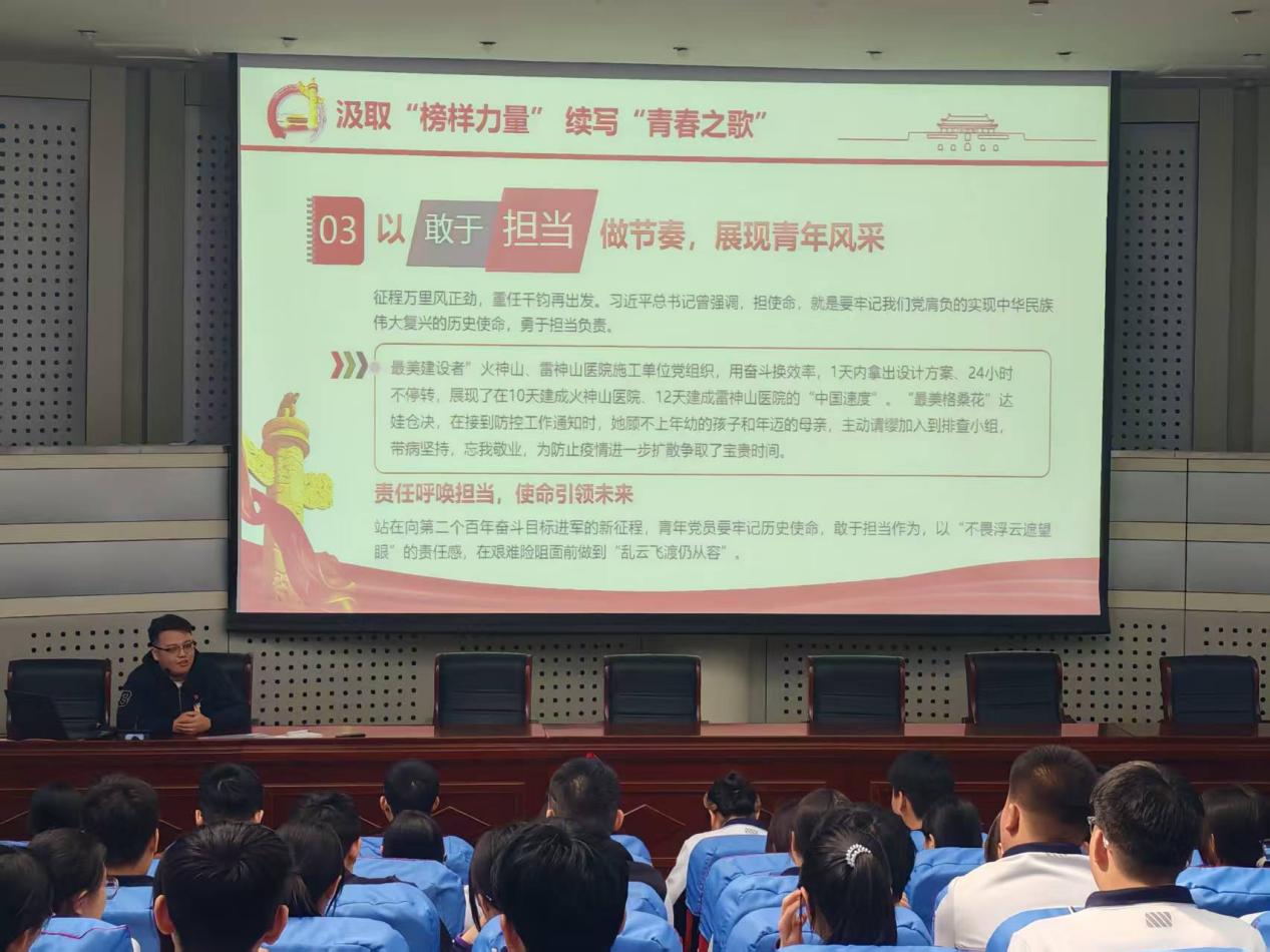 此外,本次微党课还特别设置了“汲取榜样力量,续写青春之歌”专题环节。孙大正通过生动的案例和感人的故事,倡导青年学子以英勇无畏为精神内核,丰富青春内涵;以人民至上为价值取向,奏响青春华章;以担当实干为行动指南,展现新时代青年的奋发有为与挺膺担当;激励广大青年学子以榜样为镜,勤学实干,奋勇争先,书写属于自己的青春答卷。