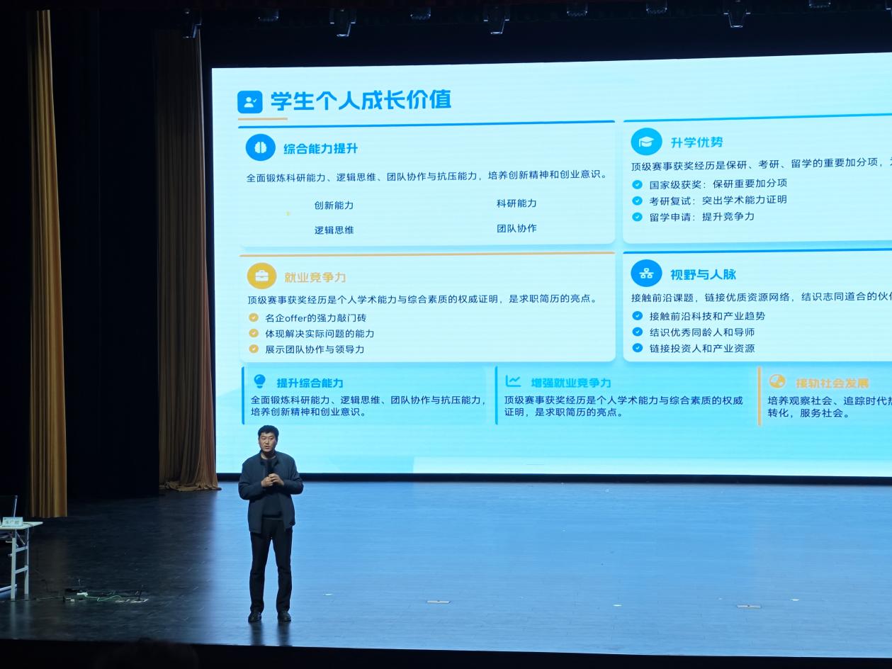 本次培训特邀朱广超专家主讲,其深耕创新创业教育与赛事指导多年,拥有丰富的评审与实战经验。作为北京中关村智酷双创人才服务股份有限公司双创产品总监、教育部创新创业中外人文交流中心研究院,同时兼任挑战杯全国大学生课外学术科技作品竞赛评委、中国国际大学生创新创业大赛国赛评审等多项职务,还为50多所高校担任双创导师,对科创赛事的评审标准、备赛技巧有着精准且深刻的理解,为本次培训提供了专业、权威的指导支撑。