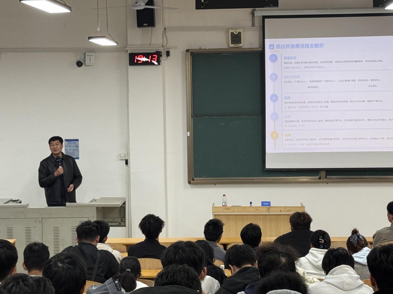 培训现场,朱广超专家围绕挑战杯创业计划竞赛核心内容展开系统细致的讲解。从大赛概况、赛事定位与赛道分类入手,为师生厘清赛事整体布局,明确参赛方向;随后聚焦核心评审标准及评分要点深度解读,精准拆解备赛关键步骤与项目打造的核心关键点,让师生清晰掌握备赛重点与发力方向。同时,专家结合金奖项目经典案例进行沉浸式剖析,通过真实案例分享优秀项目的打造思路、设计逻辑与展示技巧,将理论知识与实战经验深度结合,为参赛项目的优化升级提供了可落地、可参考的实用方法,在场师生均感收获颇丰。
