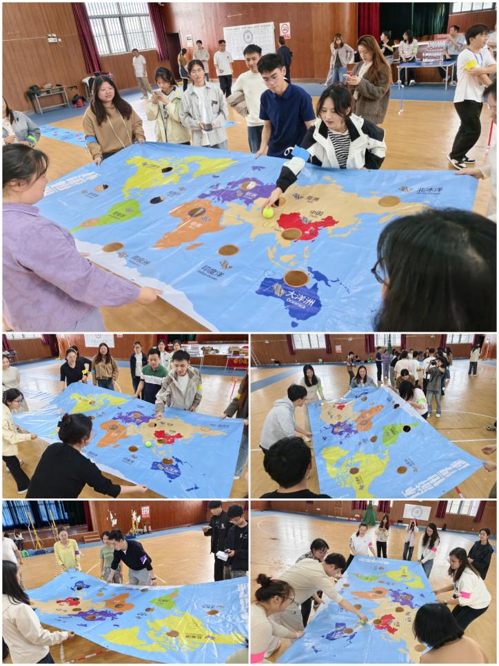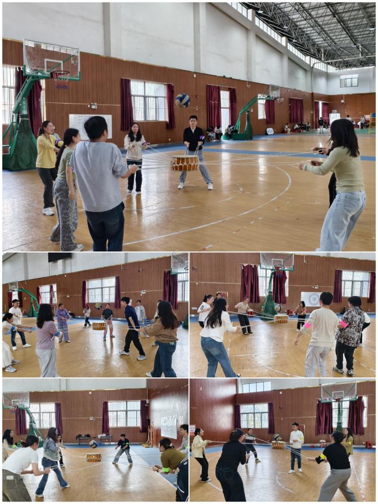 本次素拓设置了手脚并用、四平八稳、环游世界、鼓动未来四项特色游戏,全方位考验团队配合、平衡把控与协同应变能力。在手脚并用环节,各队成员严格遵循赛道规则,手脚对应图案有序前行,步调统一、衔接流畅,在争分夺秒中展现出极强的规则意识与身体协调性;在四平八稳项目里,队员们依次持道具板托球穿越障碍,全程稳慎操作、默契接力,以耐心与专注完成全程;在环游世界环节中,小组分工协作、精准操控,确保小球沿指定路线顺利抵达终点,尽显策略配合与精准操作能力;压轴的鼓动未来项目将气氛推向高潮,全员牵拉同心鼓引绳合力颠球,节奏整齐、配合无间,在规定时间内全力冲击更高次数,用团结协作书写精彩。
