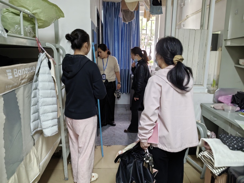 检查组实地检查了学生公寓、实验室、图书馆、食堂、商业门店等重点场所,重点围绕消防安全、食品安全、实验室安全、施工安全、校内经营场所安全等方面进行了全面细致的检查,就检查中发现的安全隐患和存在问题与相关职能部门工作人员现场交换意见,并提出整改要求。在公寓检查过程中,检查人员叮嘱同学们要增强安全防范意识,离校前关好门窗,并围绕防范电信诈骗、防溺水、交通安全、传染病预防等方面开展安全教育,提升学生自我保护能力。