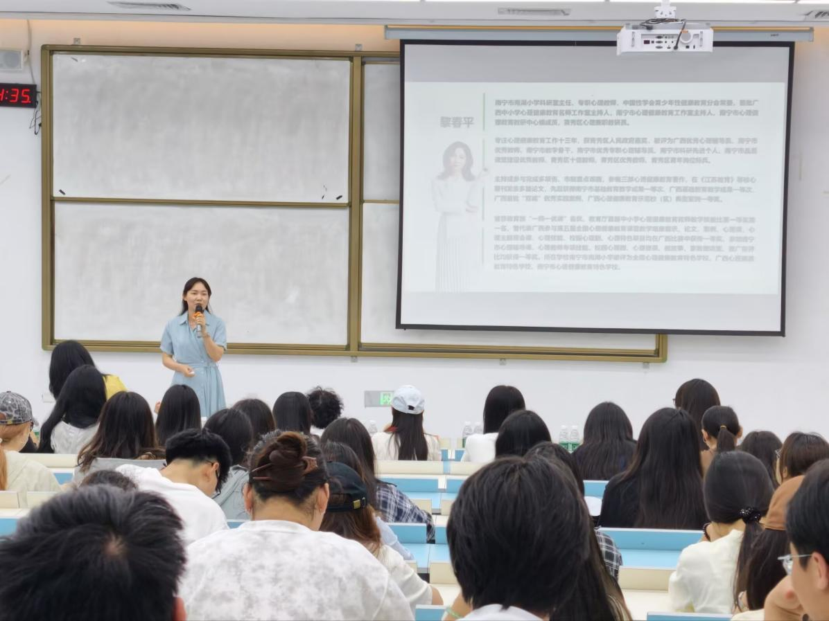 为帮助大一下学期应用心理学专业学子破解学业迷茫、锚定成长方向,2026年3月25日,南宁理工学院新视域文化产业学院、文理学院应用心理学专业开展“心途·导航”开学第一课主题讲座。本次讲座特邀南宁市南湖小学科研室主任、专职心理教师黎春平老师主讲,以专业陪伴为学子搭建成长桥梁,助力同学们平稳度过“迷茫期”与“分化期”,以积极姿态开启新学期新征程。